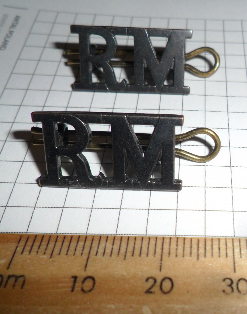 61. Погонні або петличні знаки "RM" Королівської морської піхоти ВМФ Великої Британії (Royal Marines), метал не магнітиться, ціна Продано!