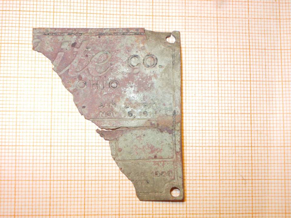 Здравствуйте, Я бы предположил, что у вас шильдик от грузовика White: https://yuripasholok.livejournal.com/12694665.html, причем как по ссылке на ПМВ, так и периода Великой Отечественной (БТР М3 и прочий ленд-лиз). А года- это даты получения патентов. Сравните шрифт White: