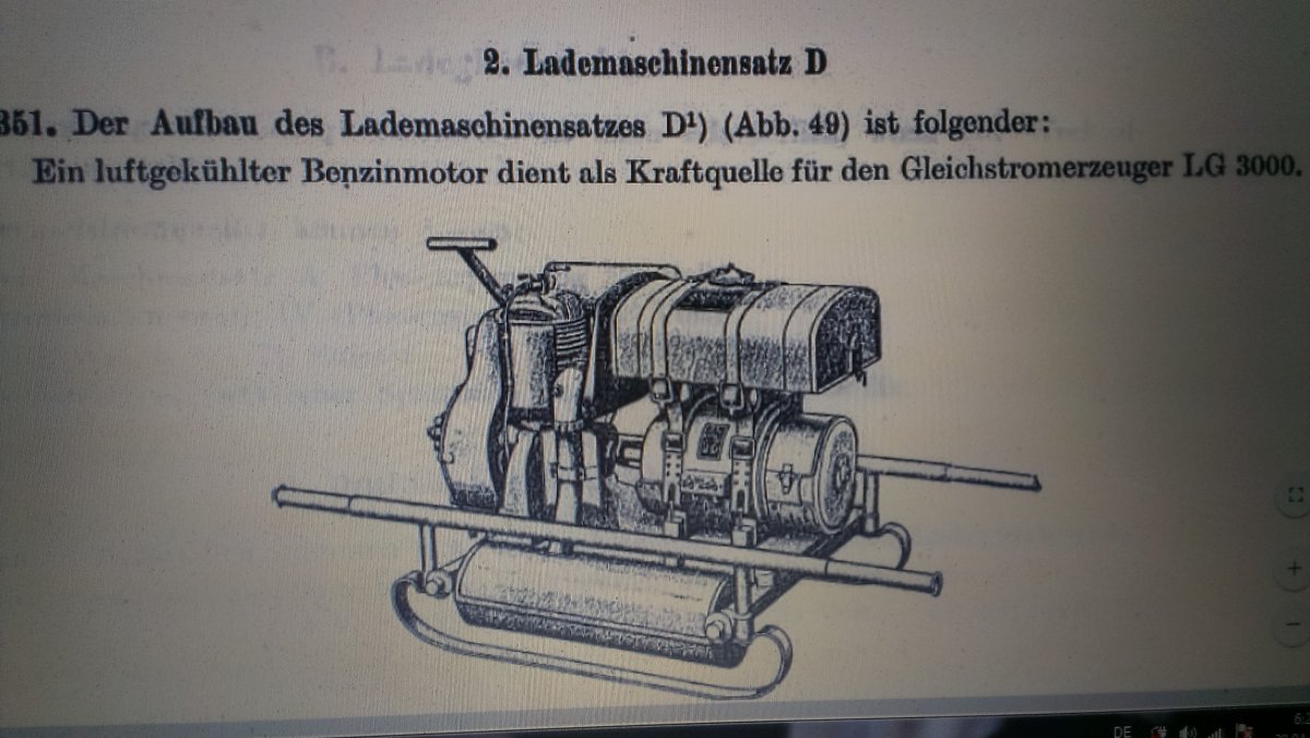 всё дело в том, что надо правильно определить, что искать на месте находки: остатки кранов, лебёдок или действительно генераторов. путаницу вносит слово Laden-грузить, но оно имеет также значение заряжать, т.е Lademaschinen - это и погрузочная техника, и также зарядная техника. на шильде есть ещё приставка - Satz D, поэтому надо искать полностью определение "Lademaschinensatz D". в вермахте было несколько разновидностей генераторов, это типы A, B, C, D, GG400, тип IV и т.д.. их называли по разному: Maschinensatz, Lademaschinensatz, Stromgenerator, Stromerzeuger и т.д., но цель их всех была одна - производить энергию. Maschinensatz GG400 самый частый из сохранившихся, а вот тип "Lademaschinensatz D" надо было потрудится найти. по ссылке ниже на странице 80 теперь можно увидеть как выглядел этот тип генератора и почитать его ТТХ.