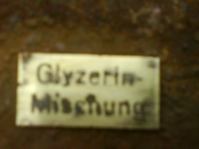 Glyzerin-Mischung переводится, как "глицериновая смесь". А вот ёмкость, на которой она была (найдена лично, назначение-неизвестно).