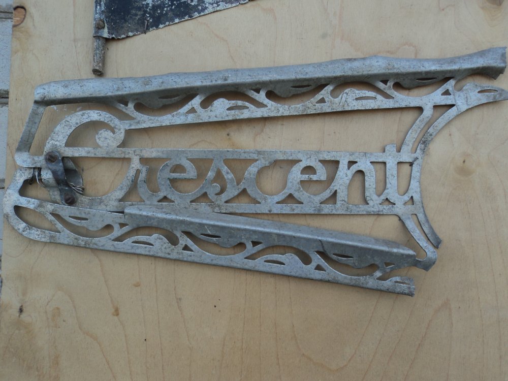 торговая марка Кресцент (Полумесяц), шведская компания с более чем 100-летней историей. Сейчас производит много чего, но до войны (и в настоящее время) известный производитель детских колясок, кроваток, колыбелей и т.п. Кроме этого производил велосипеды. Логотип на фото явно не современный, возможно решетка декора или защита (например на цепи детского велика..)