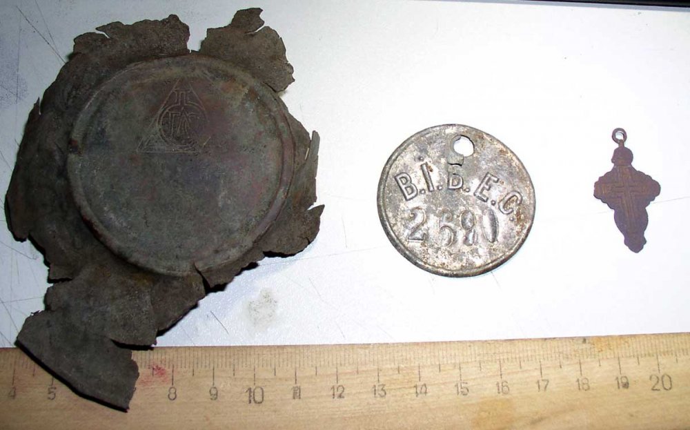 Вот сегодня пробежался... Интересует впринципе все (слева направо). Ваше мнение что и от чего. Левая штука с клеймом - материал латунь, нижний левый край - реальный размер (не рваный). Была в виде блюдца/пиалы ??? Бирка из алюминия... Крестик медный тоненький, с обратной стороны надписи оберегающие...