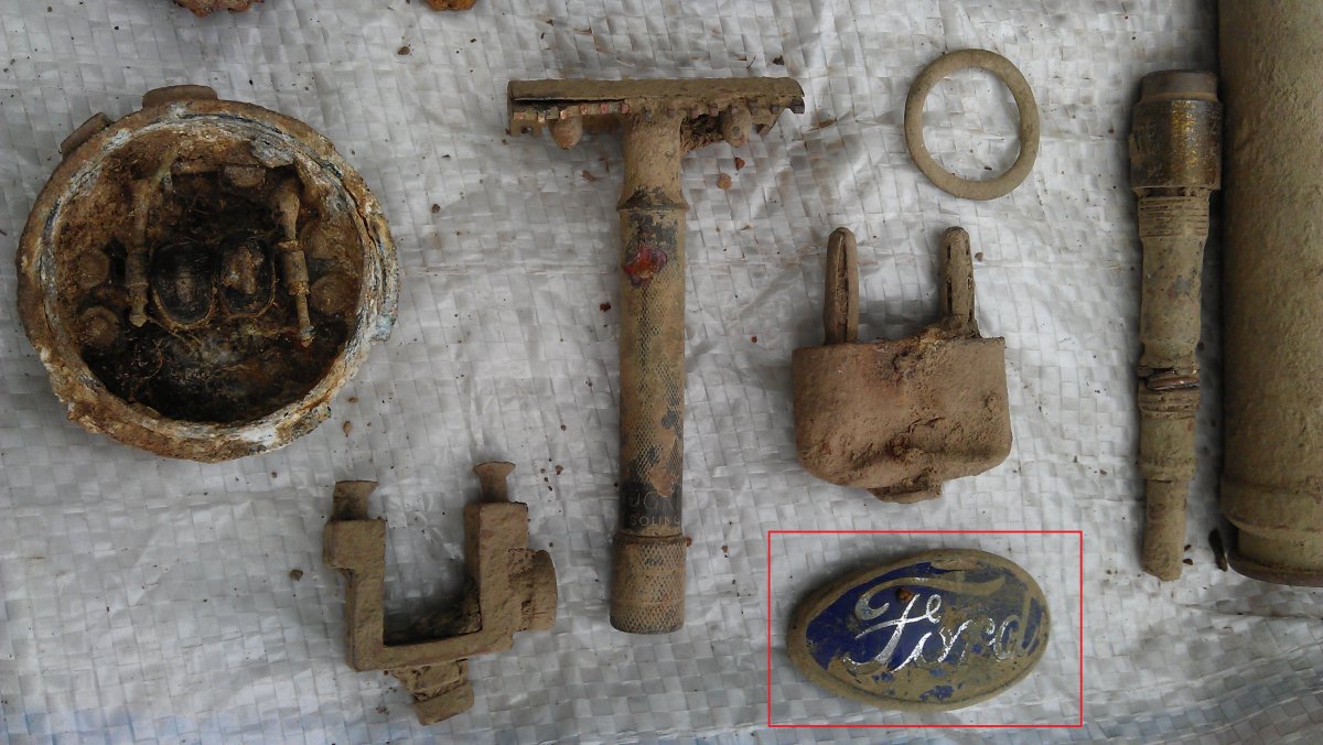 Попался вот такой обломок шильда.Похоже на цинк. Ширина - 2,5 см, длина - около 4 см.Какие будут мнения?