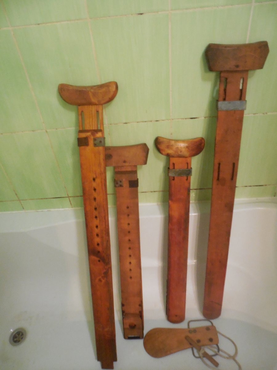 1923 році російський хірург М. Дітеріхс запропонував оригінальну шину для іммобілізації переломів нижніх кінцівок, яка виявилася дуже вдалою для фіксації переломів стегна, гомілки та суміжних суглобів. У 1934 році шина Дітеріхса була покращена та прийнята до використання в Червоній Армії. Цікаво те що Дітеріхс сам був німецького походження. В роки Другої світової німці відбирали ці шини в поранених червоноармійців, так як шина дозволяла проводити витяжіння по типу скелетного. Використовується і по нині. Буржуйскі аналоги вдосконалені, але досить важкі. Вага дерев,яної близько 1,6 кг. Для реконструкції чи використання для призначенням. В наявності 2 шт, одна комплектна ціна 300 гр, інша без ступні і палки для тракції ціна 150 гр Для реконструкції чи використання для призначенням. Відправлю пріоритет Інтайм, Делівері. Гірше Нова Пошта. Укрпоштою не відправляю. Доставка на покупцеві.