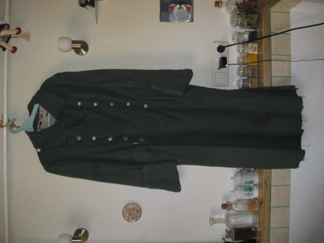 Состояние удовлетворительное. Потери: дырки не большие зашиты родной тканью. Воротник с другой шинели переставлен. Застегивается на две стороны. Подкладка с потертостями без потерь. нет маленьких пуговиц. Стоит такой предмет 550$.