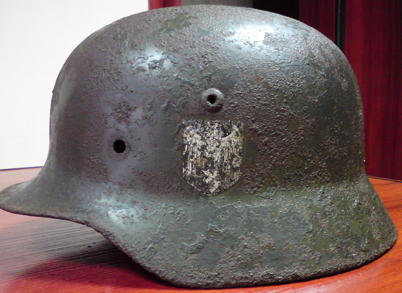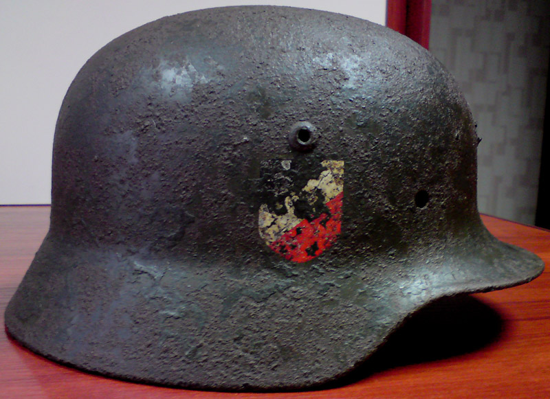 Уважаемые коллеги, просьба подсказать реальную стоимость данного шлема. Как я понимаю, это М-35. Шлем целый, за одним исключением: входное отверстие от пули в затылке и выходное во лбу. Видимо снайпер. Шлем двухдекальный, имеются следы полевого перекраса. В реальности выглядит очень и очень красиво... Размер показал как смог. Буду благодарен за помощь. С уважением, Вадим.
