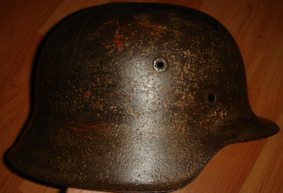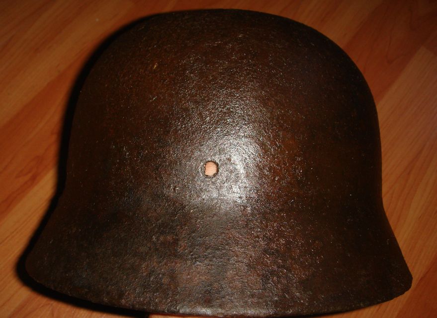 "Исходник" под реставрацию. Немецкий стальной шлем М35\64-й размер (66см по окружности). Металл крепкий,кроме дыры в верхней части иных повреждений нет. Цена 280грн.