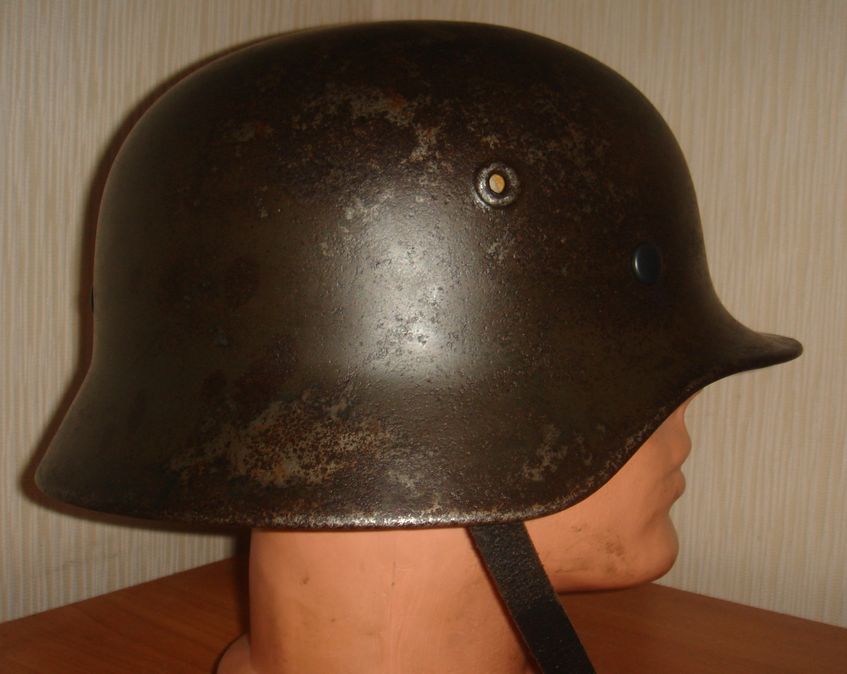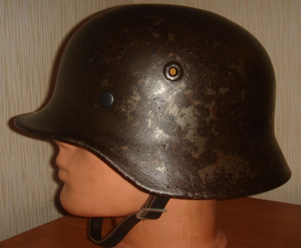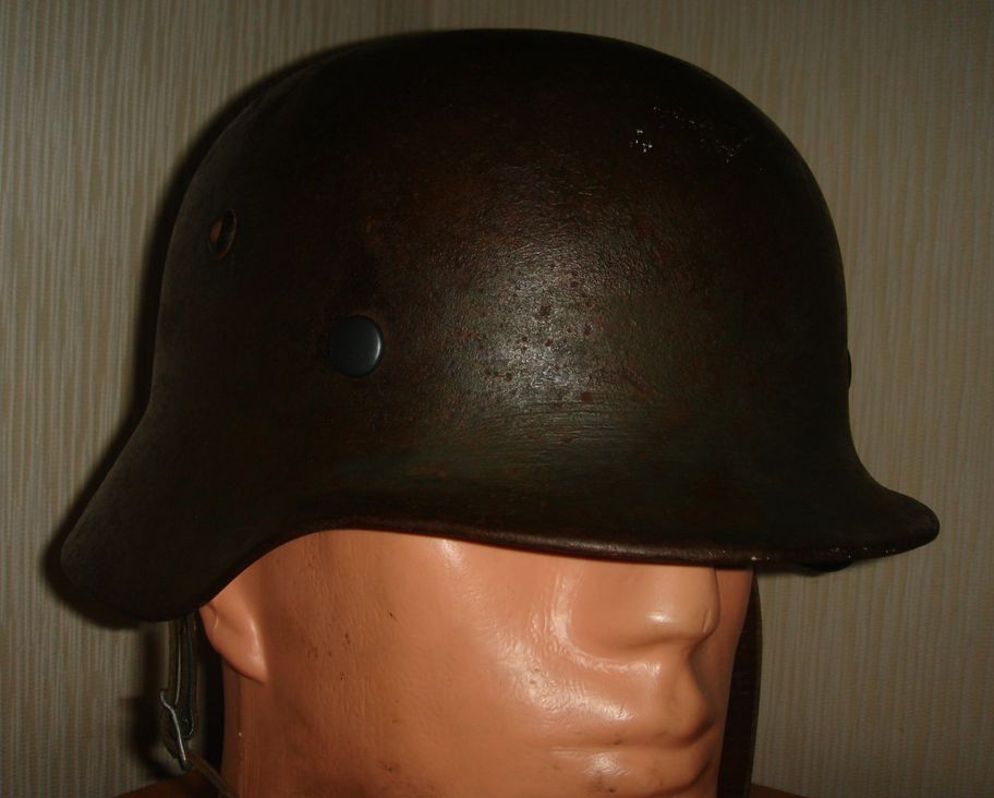 Немецкий стальной шлем М35\64-го размера. (66см по окружности). Отличный чердачный сохран.Просматриваются клейма. Кламмера и подбородочный ремнь - новоделы. Обруч подшлемника и сама кожа - оригиналы. 250$.+почта. Отправка возможна в любую точку России и СНГ. Продан.