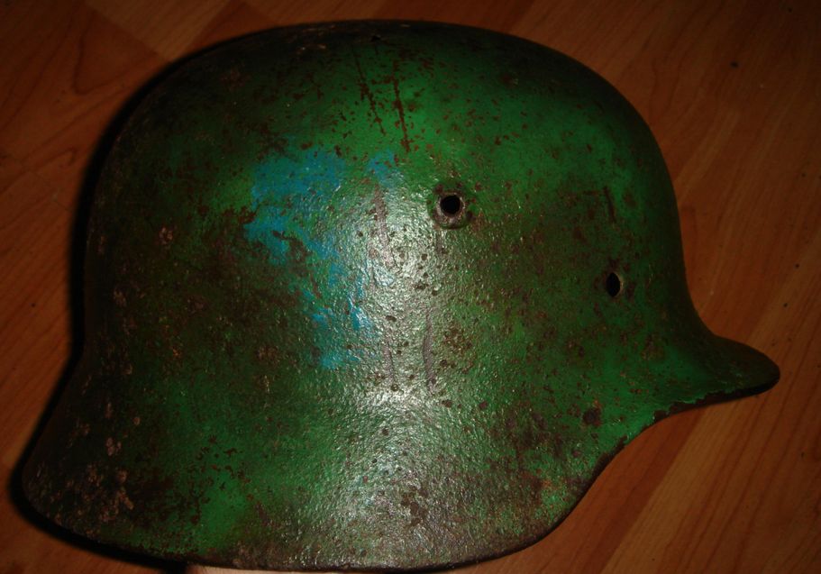 Немецкий стальной шлем М40,62-го размера. Отличного "чердачного" хранения. Повреждений и деформаций нет. сохранились плохочитаемые клйма Q62 и затылочное. Кламмера, подбородочный ремень и сам подшлемник - новоделы. Продан.