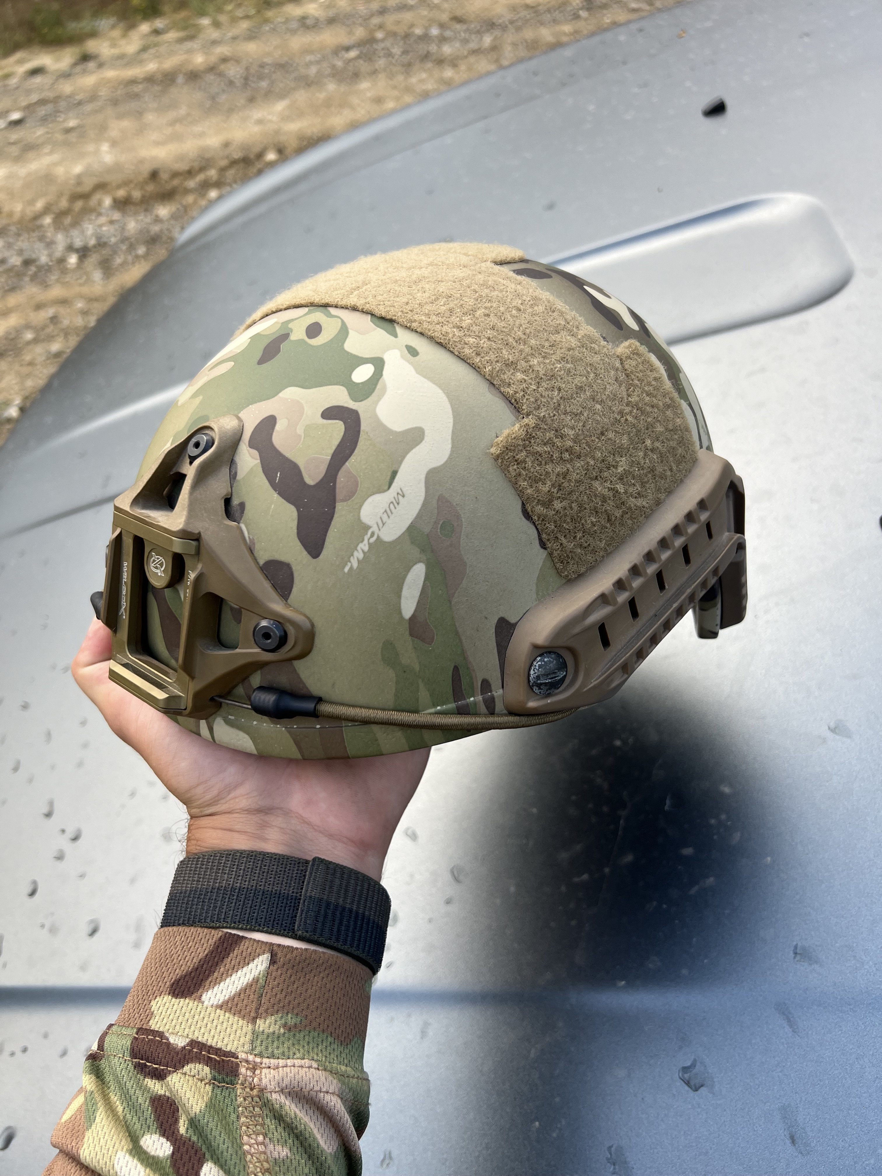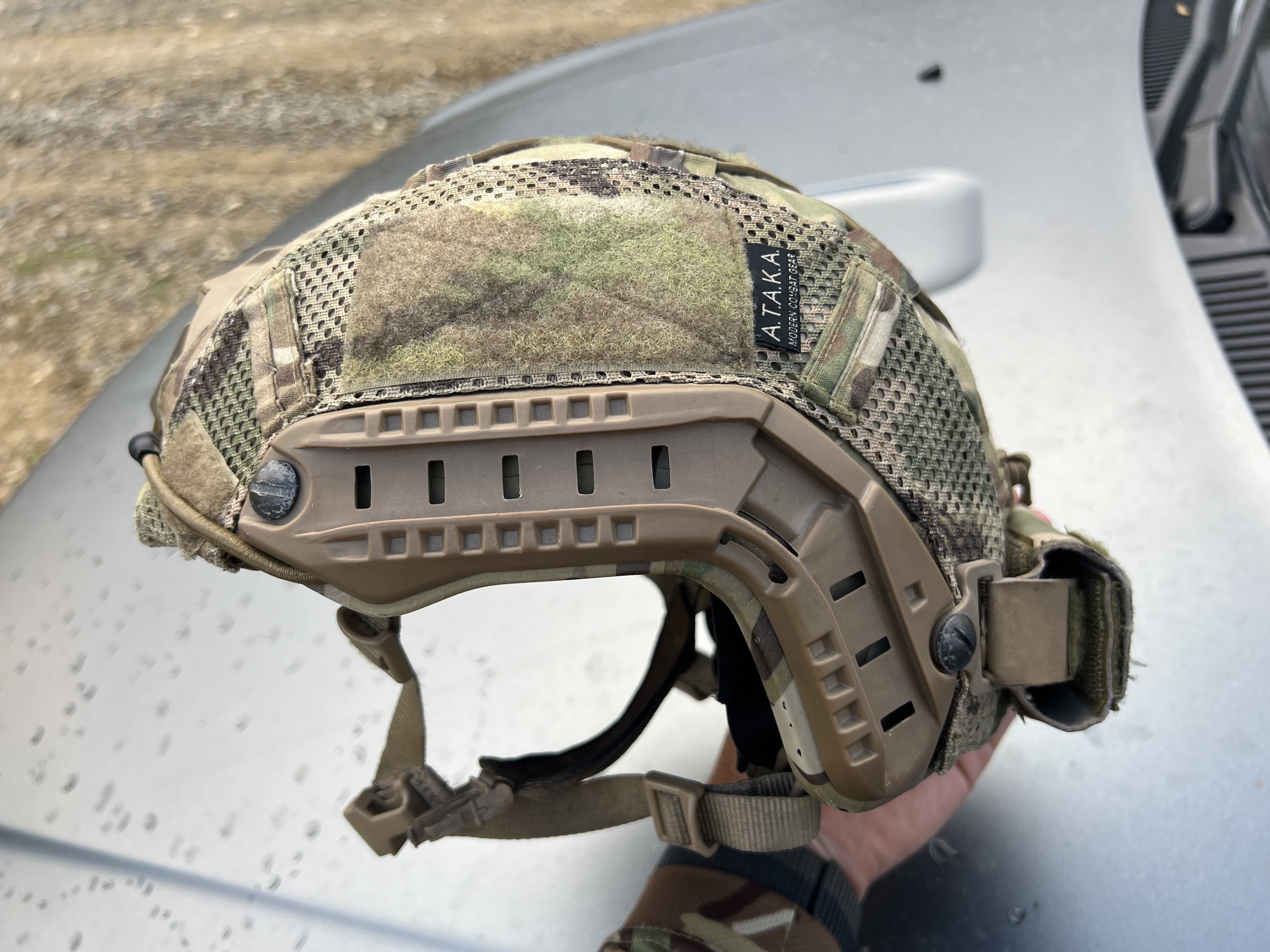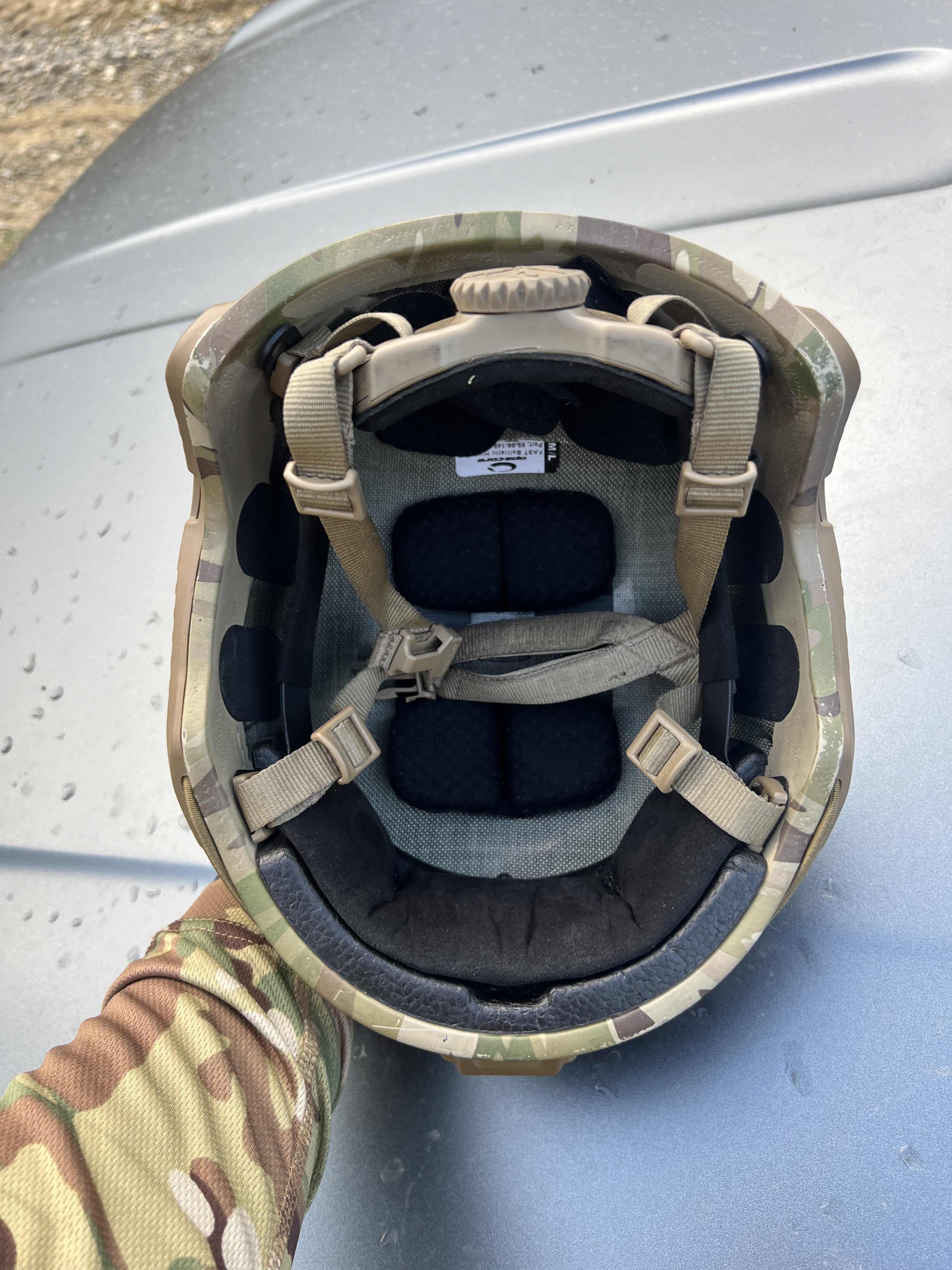 Шолом в кольорі MultiCam. Штатний шрауд замінено на оригінальний WILCOX L4 THREE HOLE зі страхувальним шнуром, посилання: https://tnvc.com/shop/wilcox-l4-three-hole-shroud/ В комплекті: -страхувальний шнур для ПНБ Wilcox; -2 комплекти подушок; -чохол з документацією; -кавер Ataka; -підсумок під противагу або батарейки до ПНБ; Вага 1270г. Ціна 61000грн.[ Кого дійсно цікавить - за ціну домовимось‼️