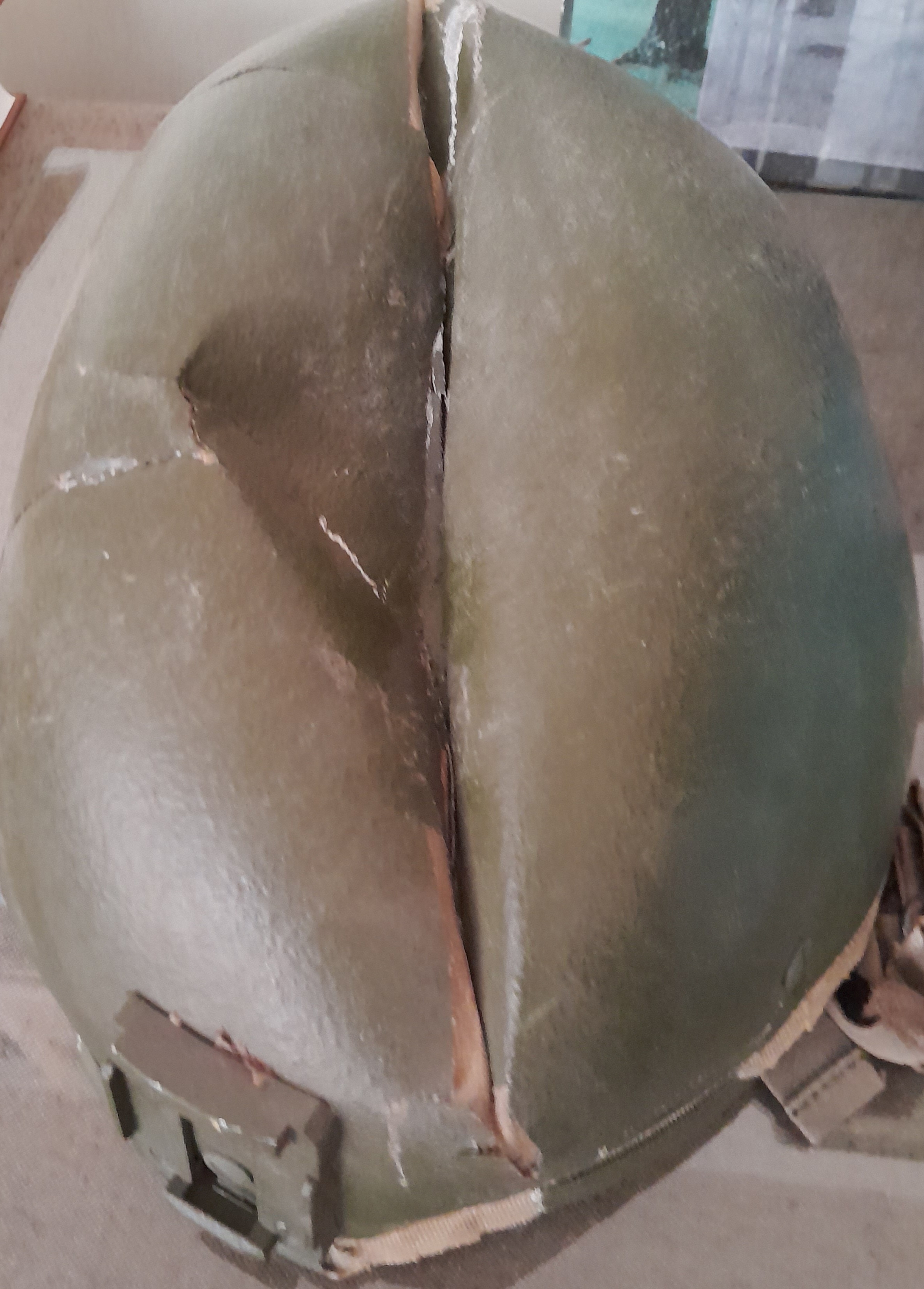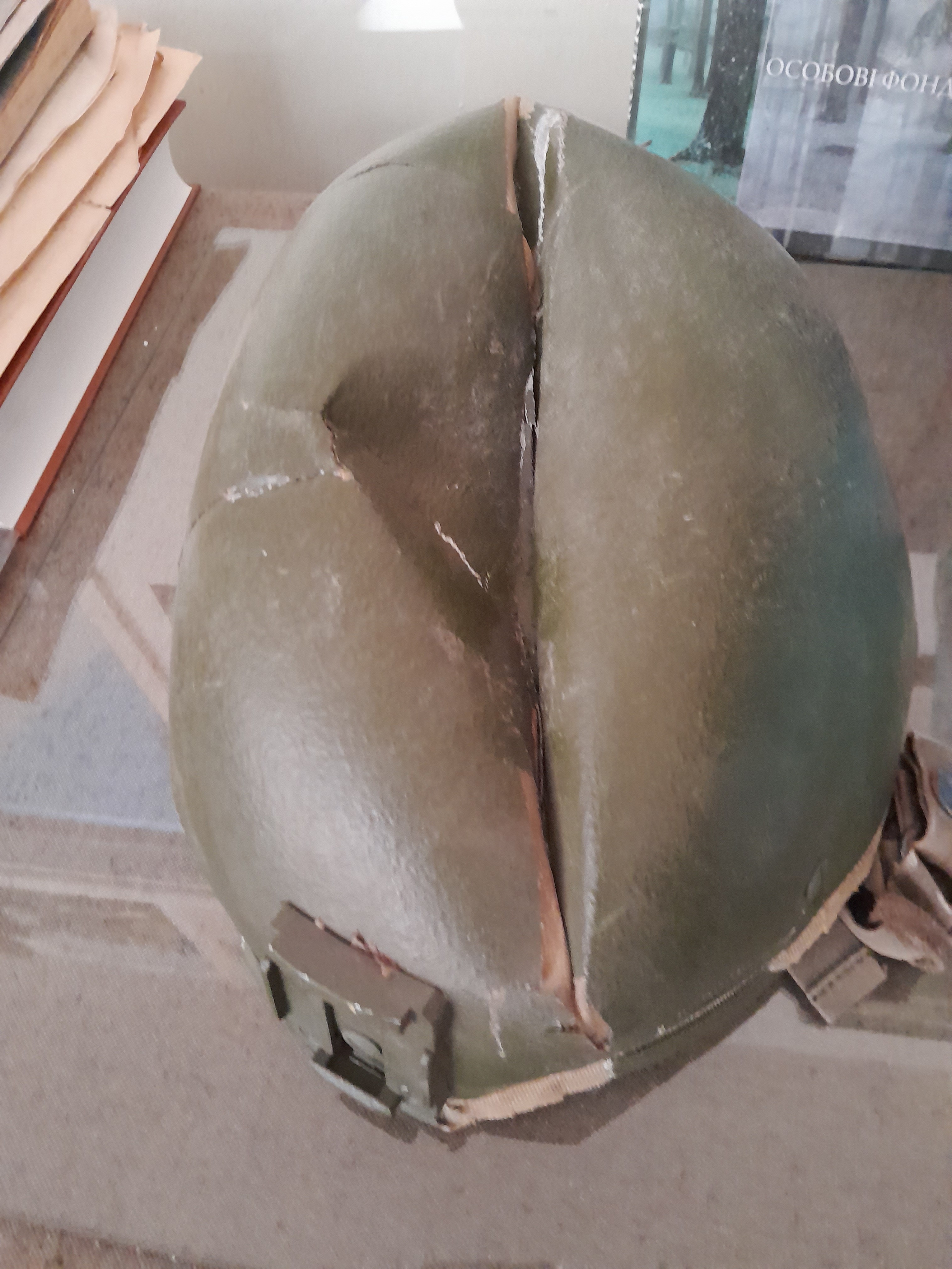 Вітання! Підскажіть, від чого могла бути така вмятина. Знайдений на місці боїв, Київщина. Якщо був на орчій голові, то чи міг вижити його носій?