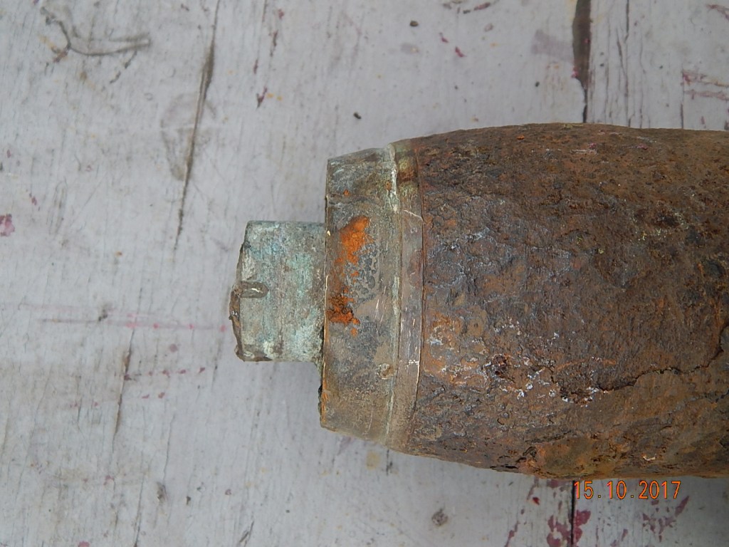 граната-шрапнель у Вас,Всередины ВВ(трубка м14,половина улетила) Як правило,якщо не спрацьовує граната,вона лежить окремо,ціла латуннв трубка і залізний стакан з ВВ Зараз фото пошукаю..