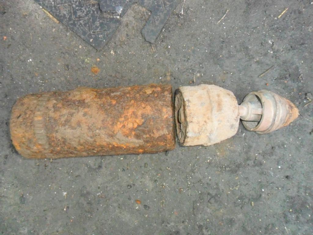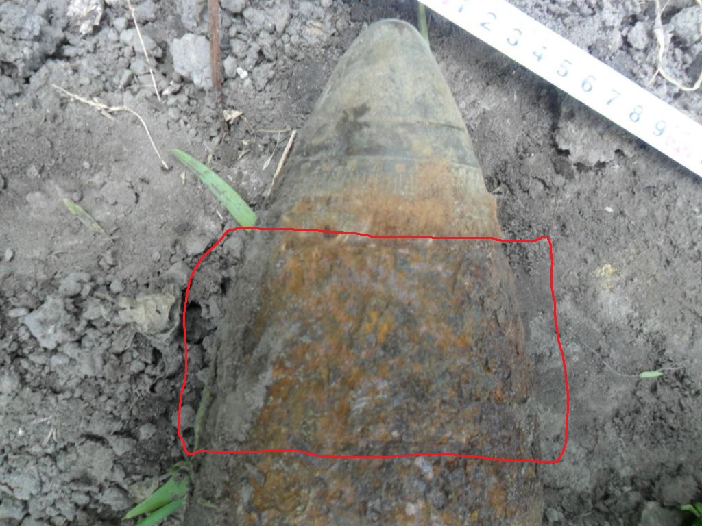 Доброго вечора. На місці боїв по ПСВ трапився такий снаряд. Шрапнельник чи ні? Діаметр по донцю 98 мм, вага більше 11 кг (далі нема шкали на безмені).