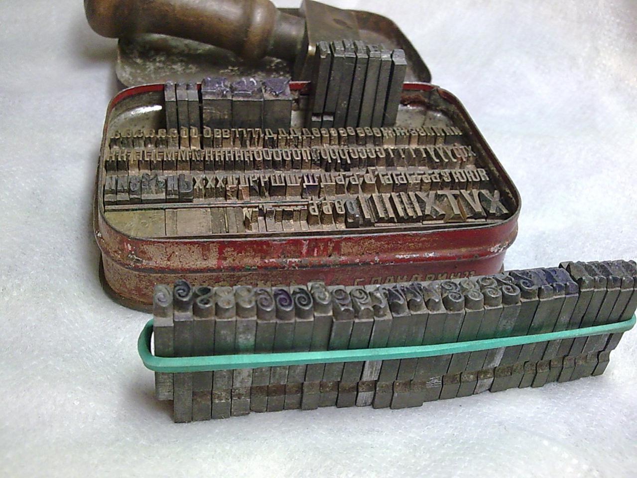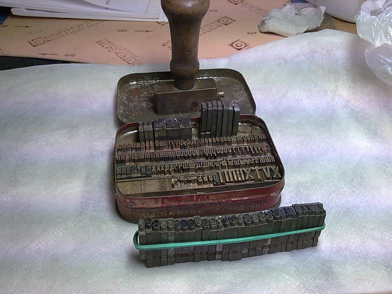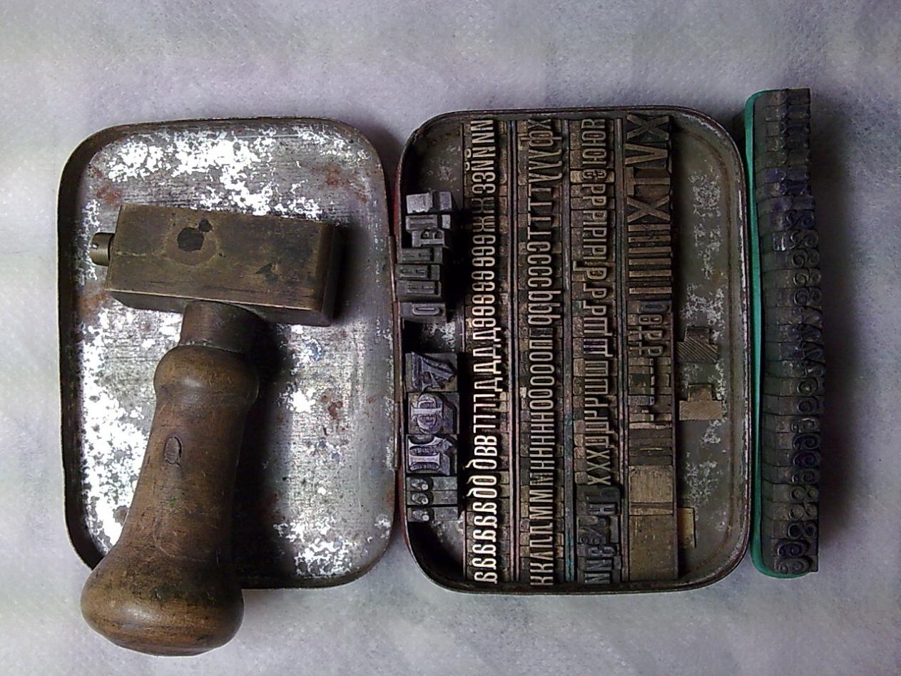Шрифты. Дореволюционного периода. Буквы все в наличии. Зажим для шрифтов, хорошо подходит для цифр. Цифры без 7-ок. Шрифты для бумаги и кожи. Цена 400 гривен.