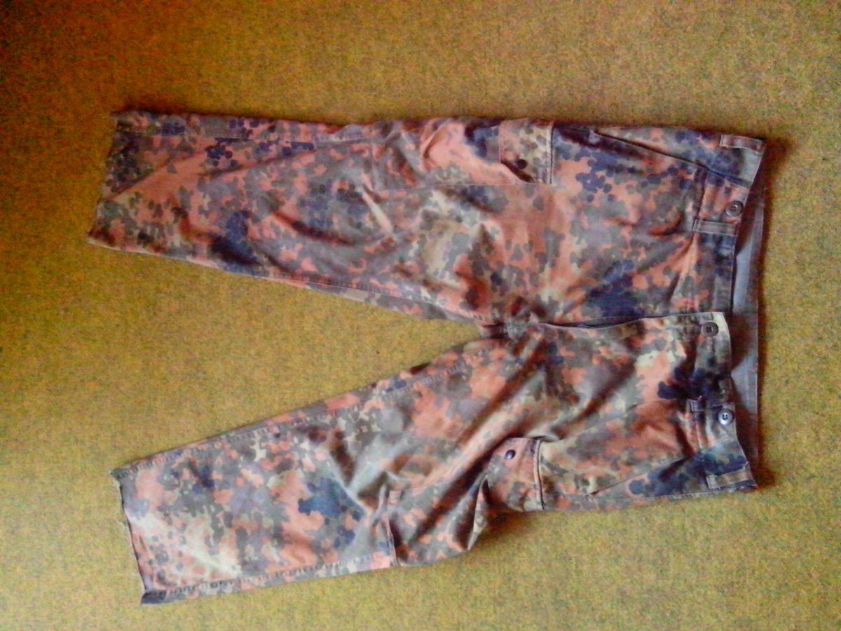 Штани бундес флектарн, розмір Gr3 Стан на тверду 4 З мінусів: -подряпина на коліні, не сквозна -були підрізані з низу, тому довжина дещо змінилась(внутрішній шов- 72см, зовнішній -99см ціна 250 грн