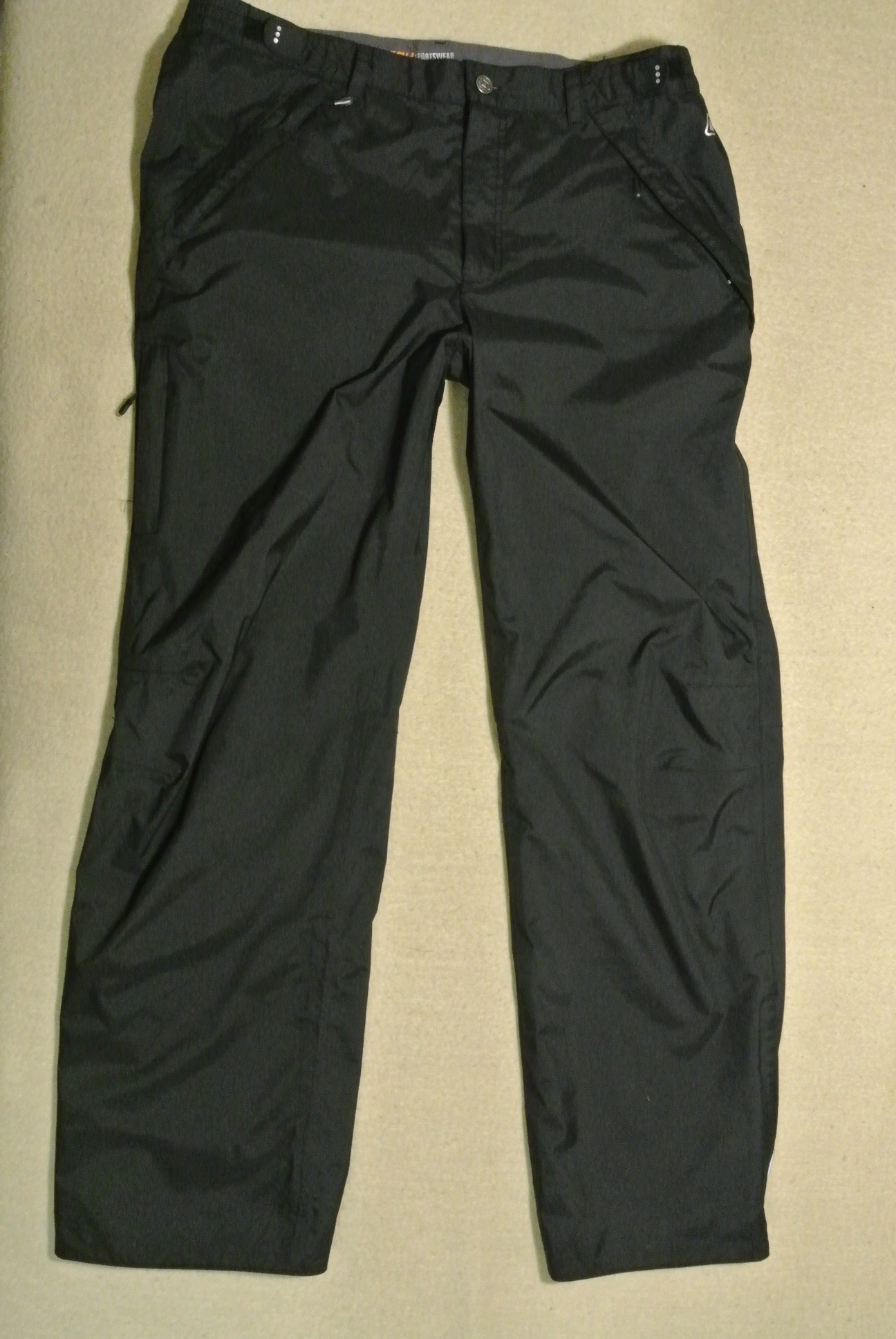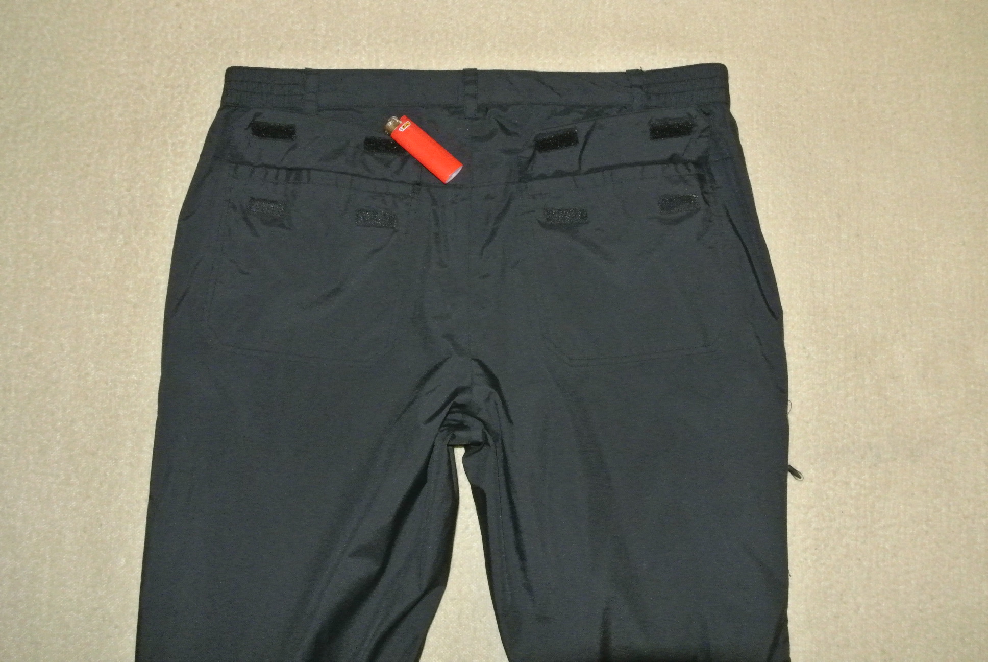 Колір чорний, дві кишені спереду під клапанами + одна на стегні, усі на блискавці, та дві ззаду на велкро. Поперек підгумований на гудзику та блискавці, а також утяжки на велкро. Низ штанин - блискавка та велкро.