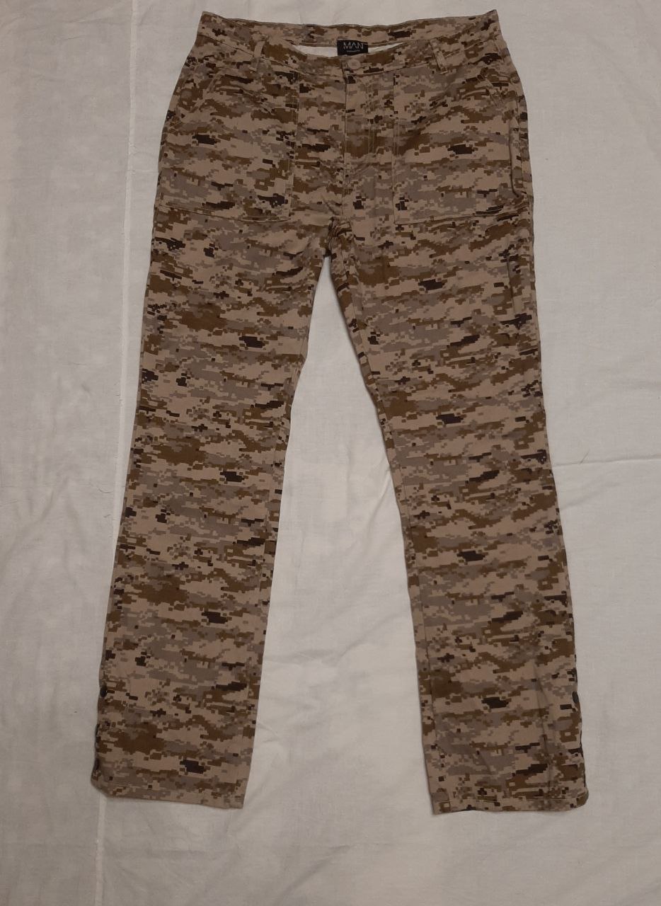 Пропонуються штани від бренду Man. Б.в., у доброму стані, як нові. Камуфляж pixel. Знизу для зручності одягання високого взуття наявні з'єднання на кнопках. Всього 4 кишень. Розмір: L. Заміри: полупояс- 47см; полуоб'єм - 56см; довжина-113см; довжина внутрішнього шва - 83см. Ціна: - грн.