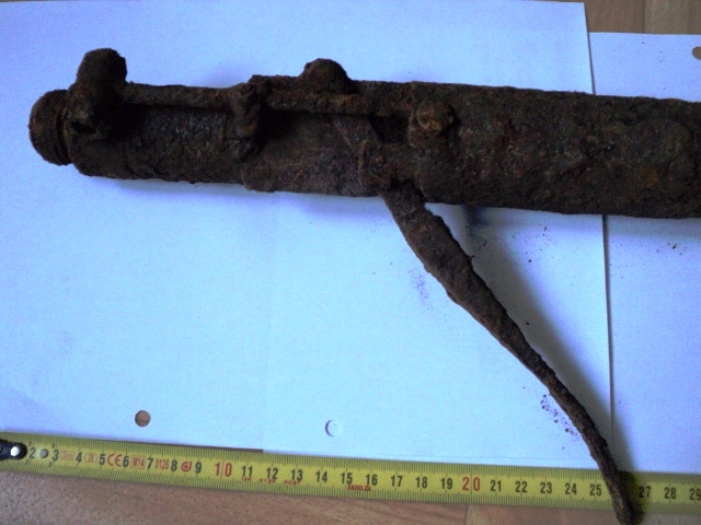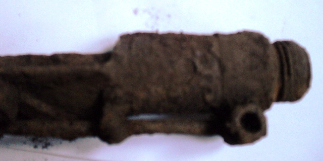 Что непонятно то? Длинная труба, в ней труба меньшего диаметра (читайте). С одной стороны рычаг и какой-то механизм, с противоположной стороны точит кусок трубы меньшего диаметра с отверстием, видимо, под шпильку. В средней части трубы есть продолговатый вырез (фото 4). На последнем фото подробно изображена часть с рычагом: на трубе меньшего диаметра резьба. Кто хоть раз сталкивался с данным предметом, тот его сразу опознает.