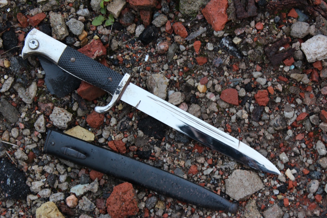 Достаточно редкий вариант цельного внестроевого , обычно клинок и рукоять две детали . Подтвержденный производитель только Веерсберг Киршбаум , могли быть и у других но это должны были быть мощные фабрики . Уж очень много фрезеровки . Такой штык покупался офицером самостоятельно ( из за повышенной цены именно данного , закупка подразделениями маловероятно ) когда кайзер разрешил носить штыки вместо сабель .