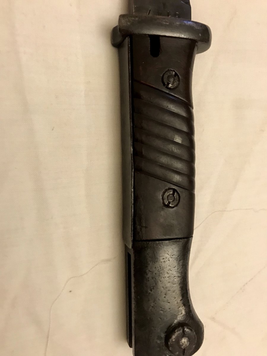 Добрий день! Купив даний штик тут на форумі на подарунок одному поважному чоловіку. Сам не розбираюсь і чесно кажучи купував виходячи зі знань отриманих тут же на форумі. Скажіть, будь ласка, можна його дарувати? Я не ображу його?? Нема ніяких косяків по ньому, крім неоригінального болта ножнів? І підкажіть зразу де його можна купити? Наперед вдячний!