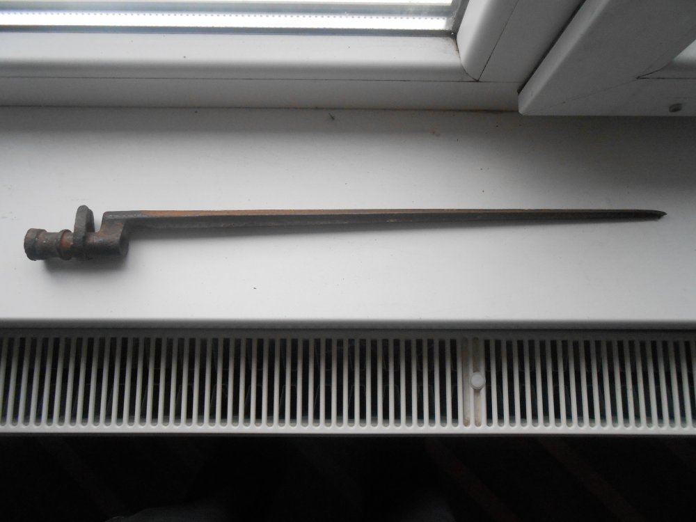 короче, вот нашел вам фото царского мосинского штыка в первозданно-складском сохране - при реставрации старайтесь добиться такого же внешнего вида у вашего экземпляра!