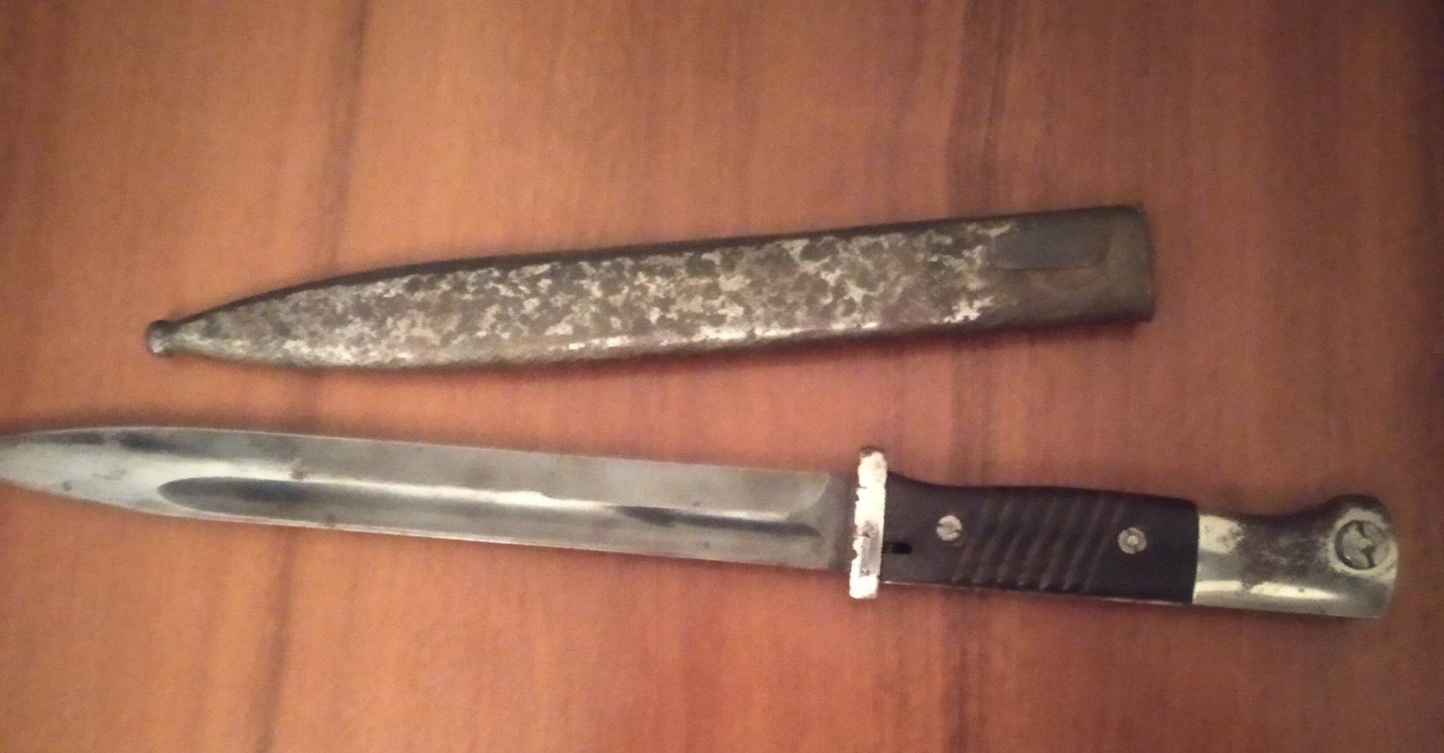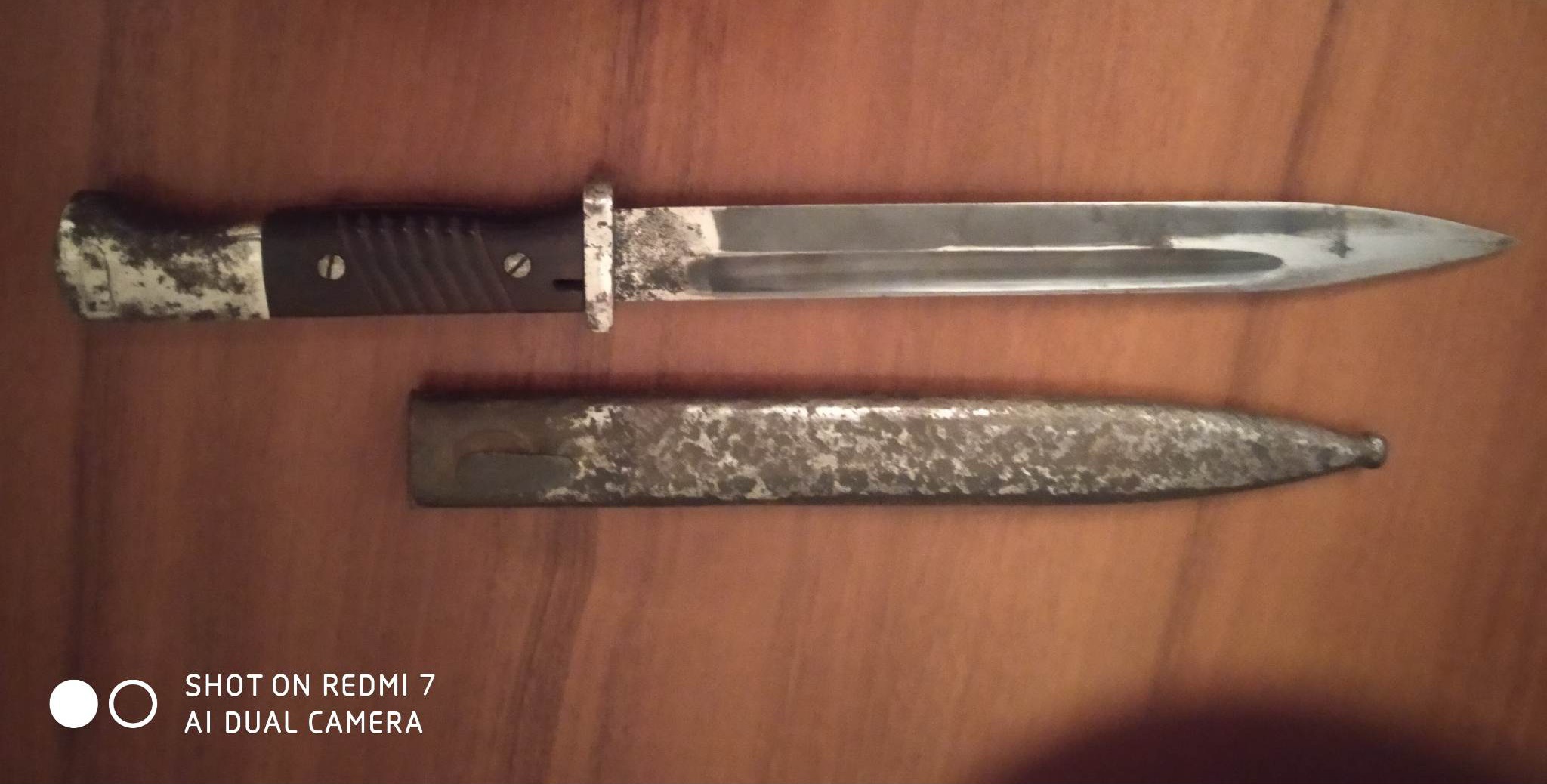Они намекают , что ты знаешь , что собираешься продавать . И собираешься выдать порченный немецкий штык к98 выпуска после 1934 года из военного заказа за эксклюзивный вариант . Фотографии не позволяют сказать определенно , что мы обсуждаем . Если клейма производителя и военной приемки действительно отсутствуют то это коммерческий вариант штыка . Но состояние далекое от коллекционного не позволяет говорить о большой цене .