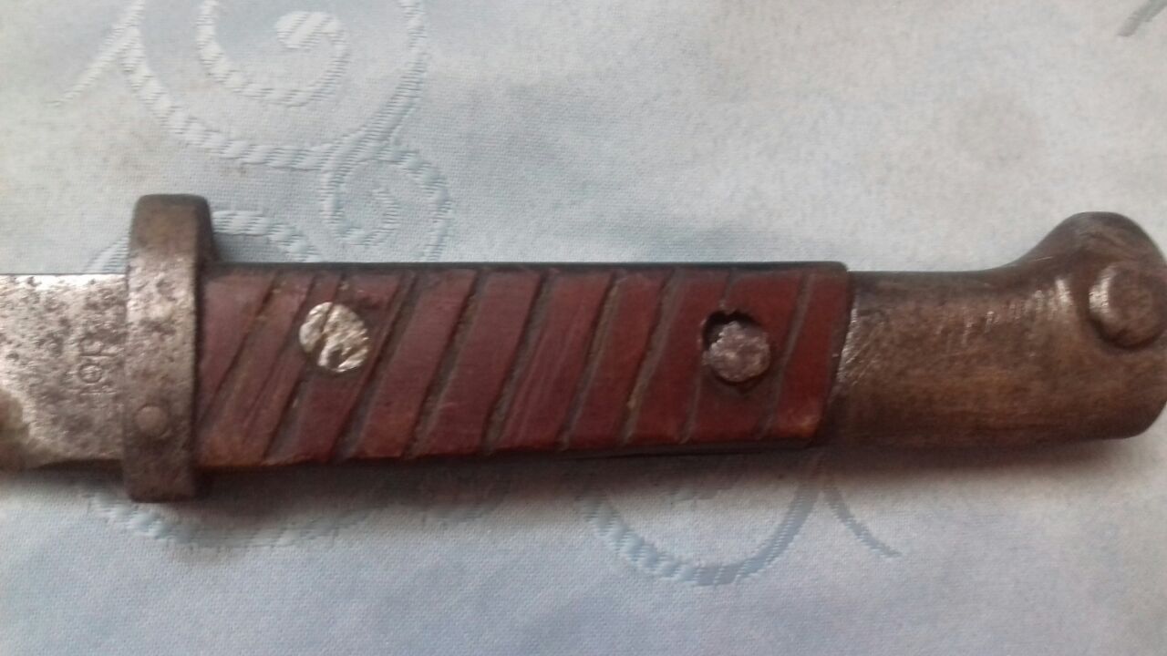 Доброго! Фото жесть, звичайно. Бачиться свинокол (швайка), що колись був штиком S 24(t) , код виробника dot - Waffenfabrik Brünn Werke (колишня Československá zbrojovka a.s., Brno), ймовірно на 1942-43 рр. З повагою,