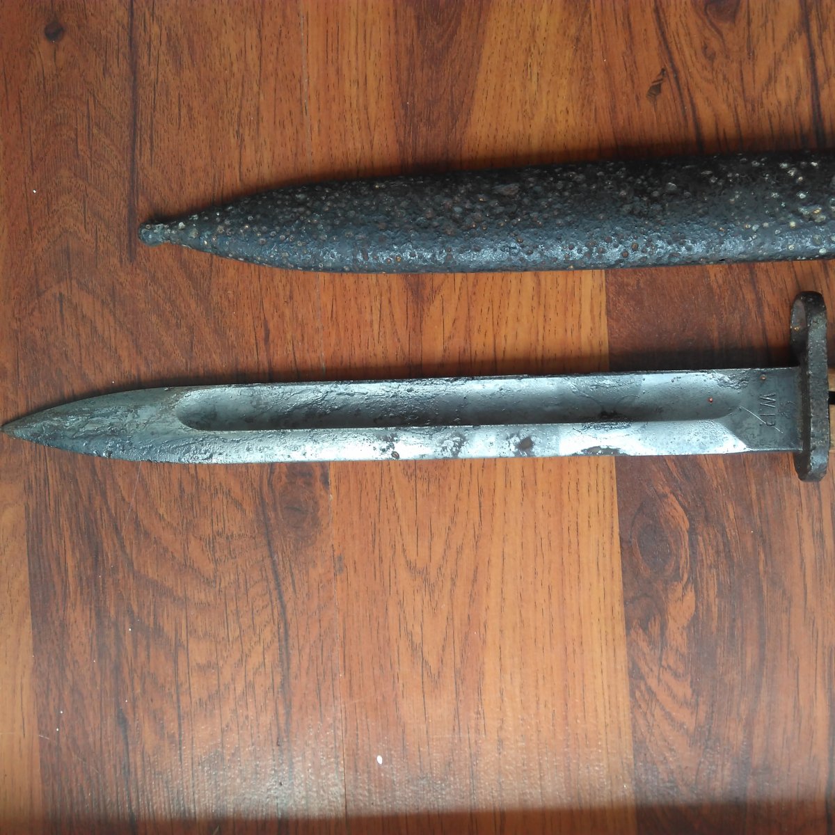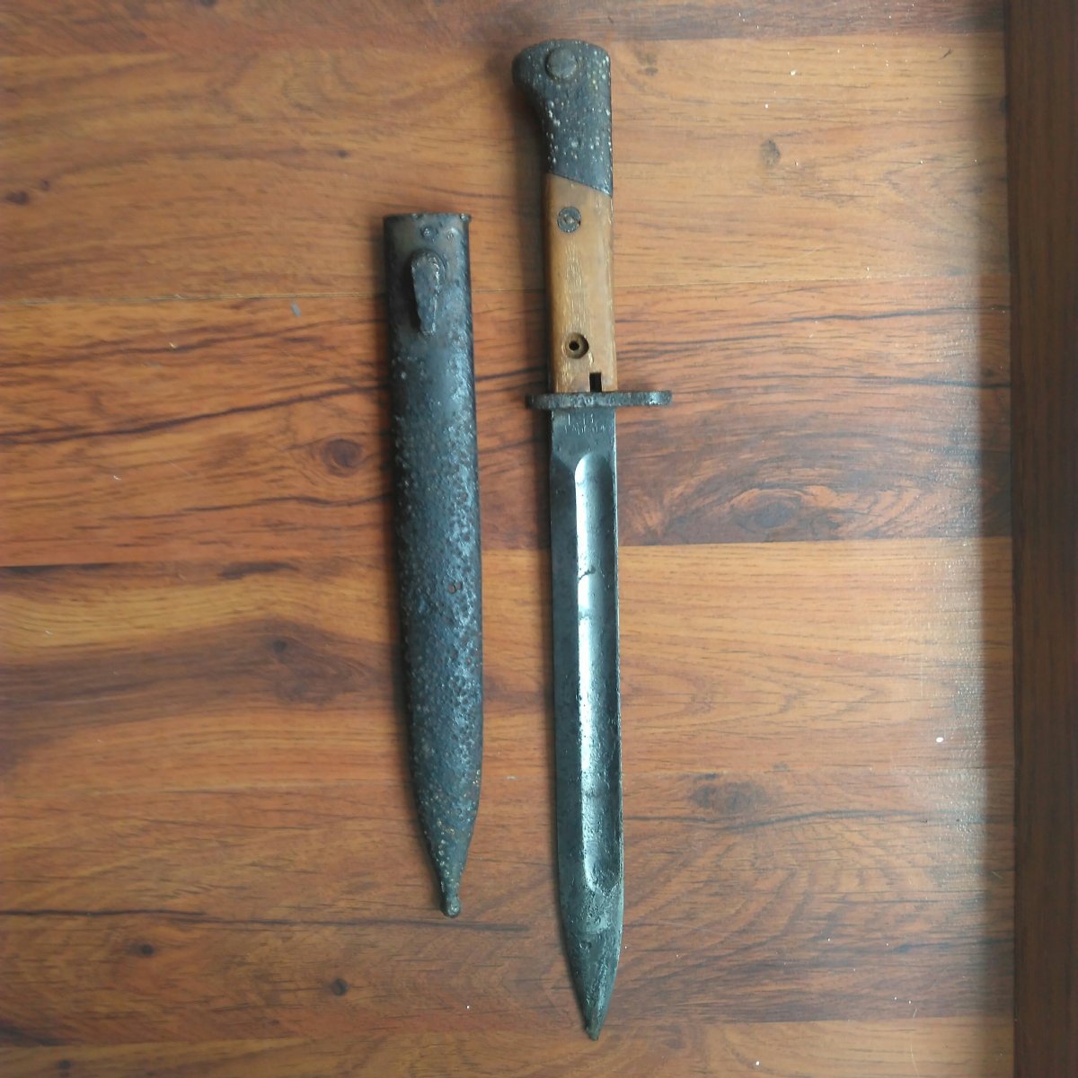 Добрий день. Шановні колеги, щоб не створювати нової теми , підскажіть будь ласка чи буде щось вартувати штик - ніж "RADOM" в такому стані. Можливо під реставрацію. Кнопка не робоча. Лезо не точене. Дякую.