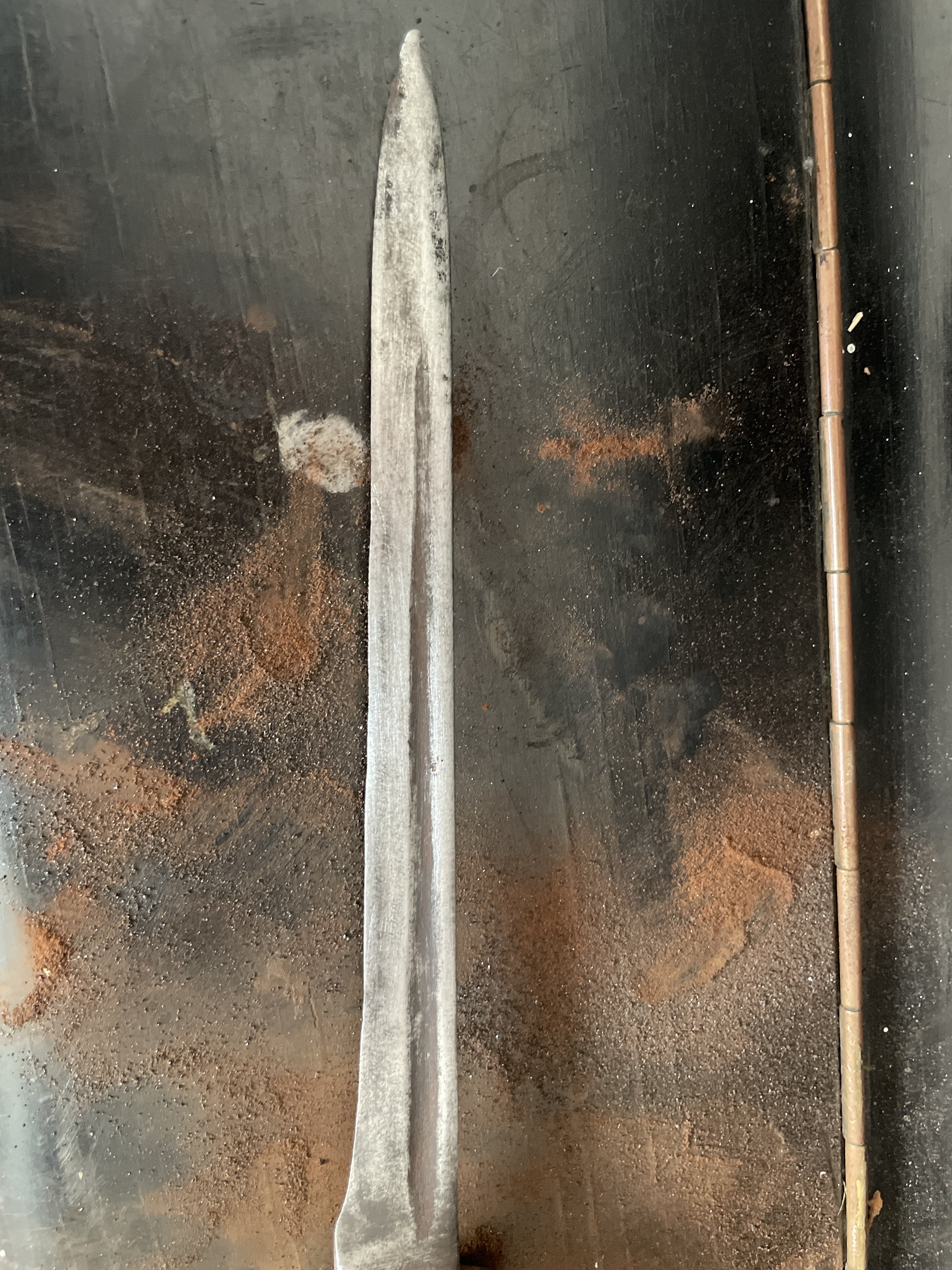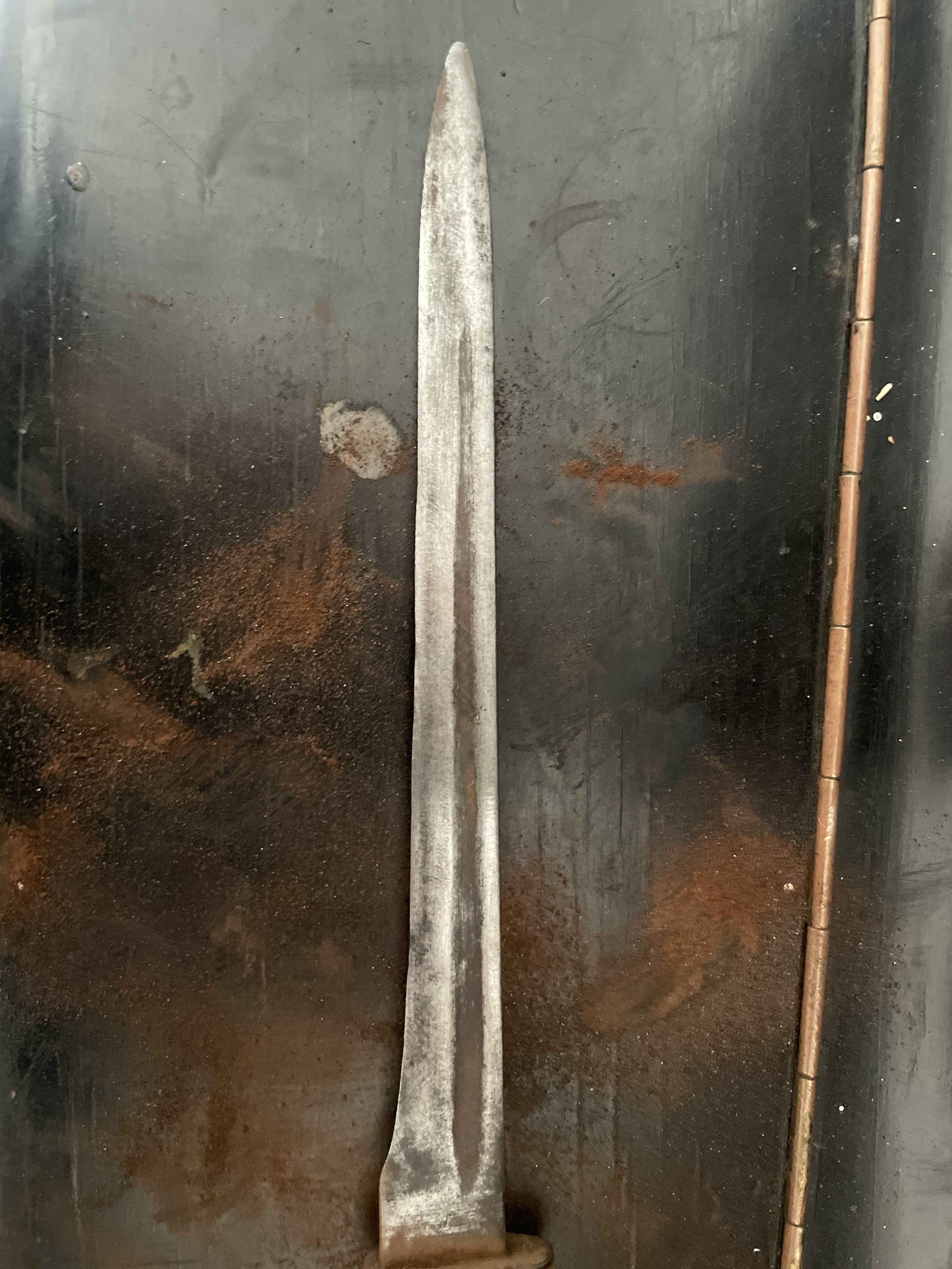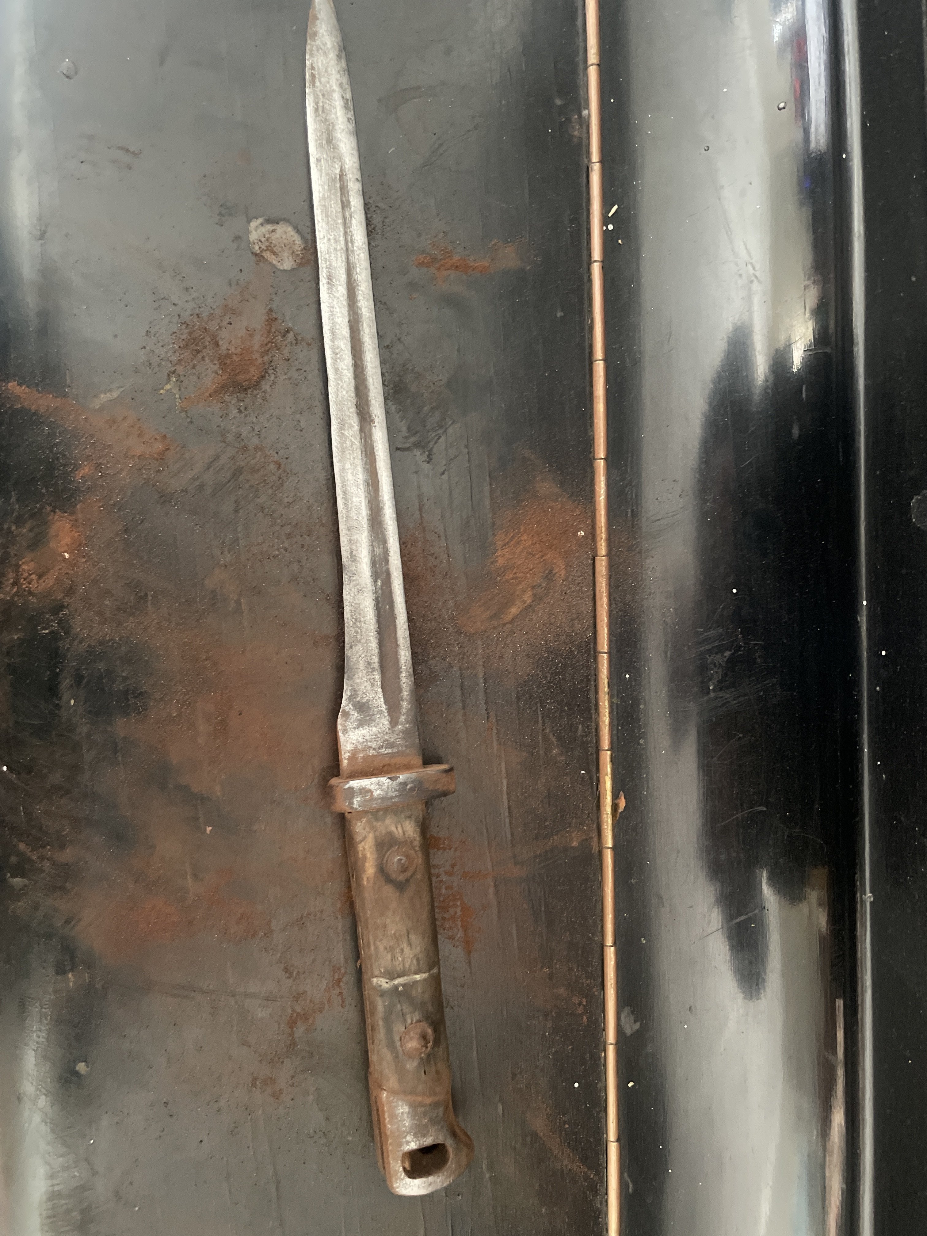 Добрий день камеради! Друг знайшов в свого дідуся штик, з його слів він часів першої світової. Єдине, ми не можемо визначитися з моделлю, тому просимо по вашу допомогу. Ніяких серійних номерів, штампів чи маркуваннь не видно . Приймаю любі відповіді російською та Українською.