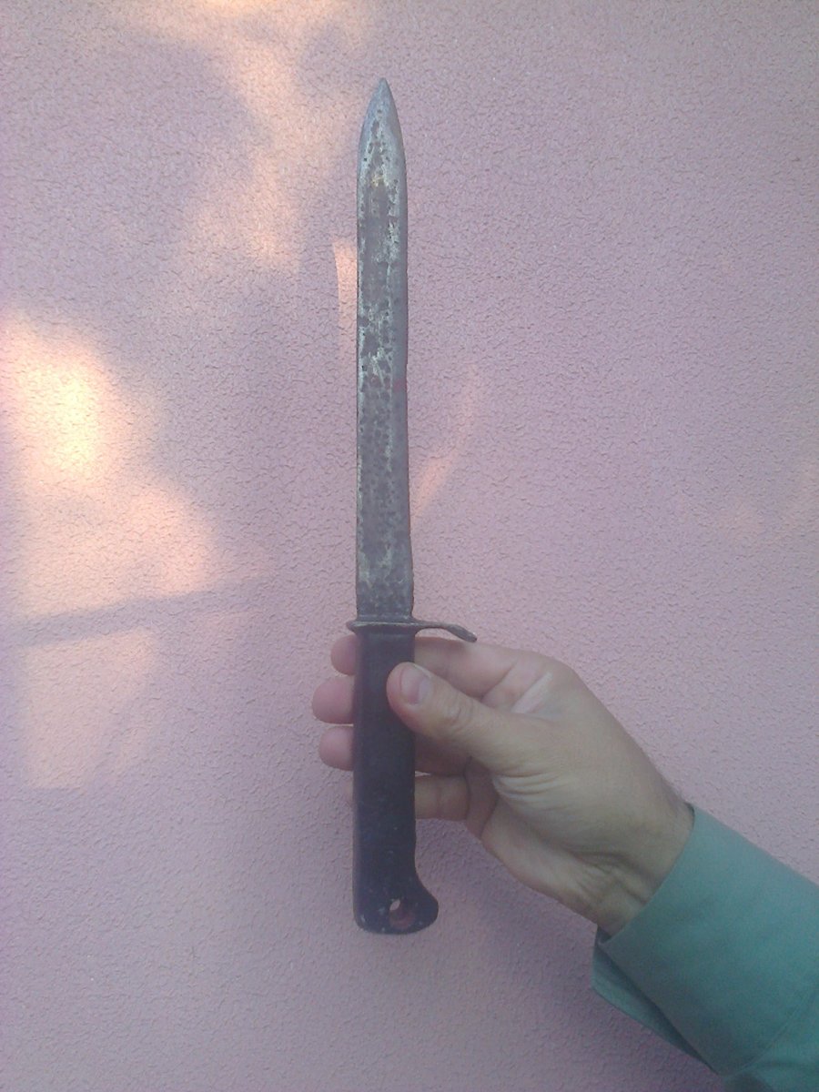 Звичайний піхотний штик ніж до К 98..Ручку реанімували.з дерева. заккрашено фарбою.Таким мені дістався.