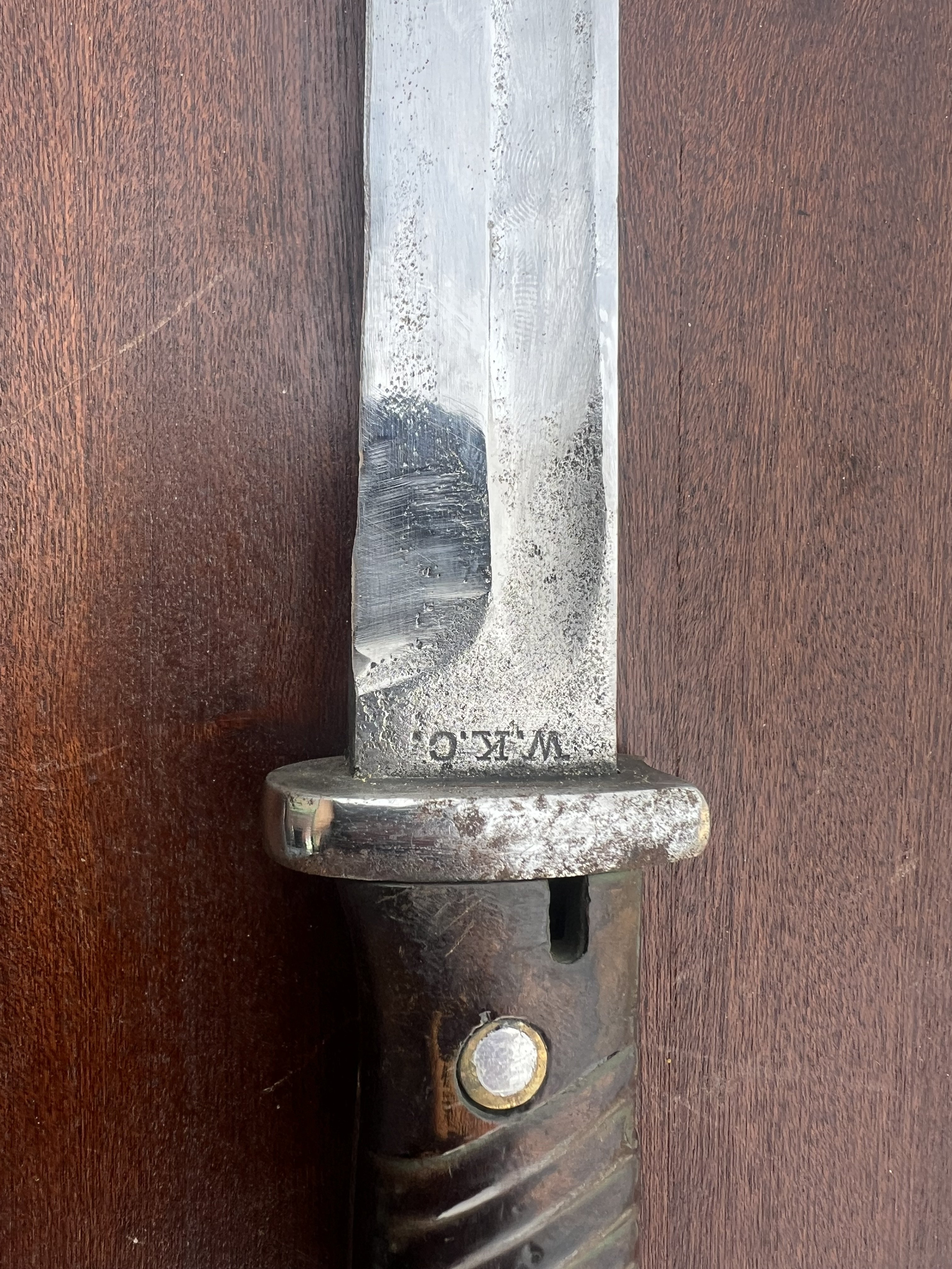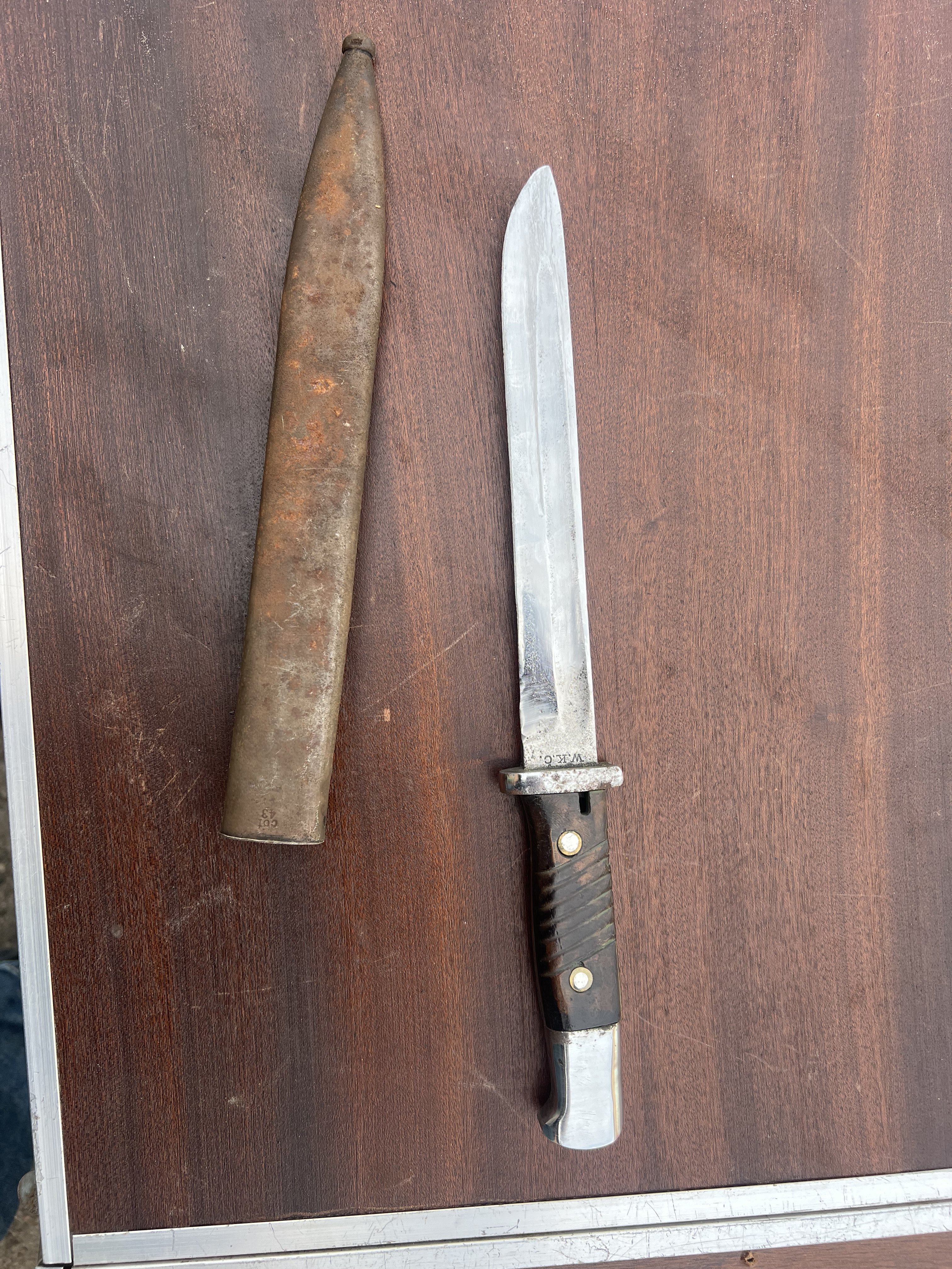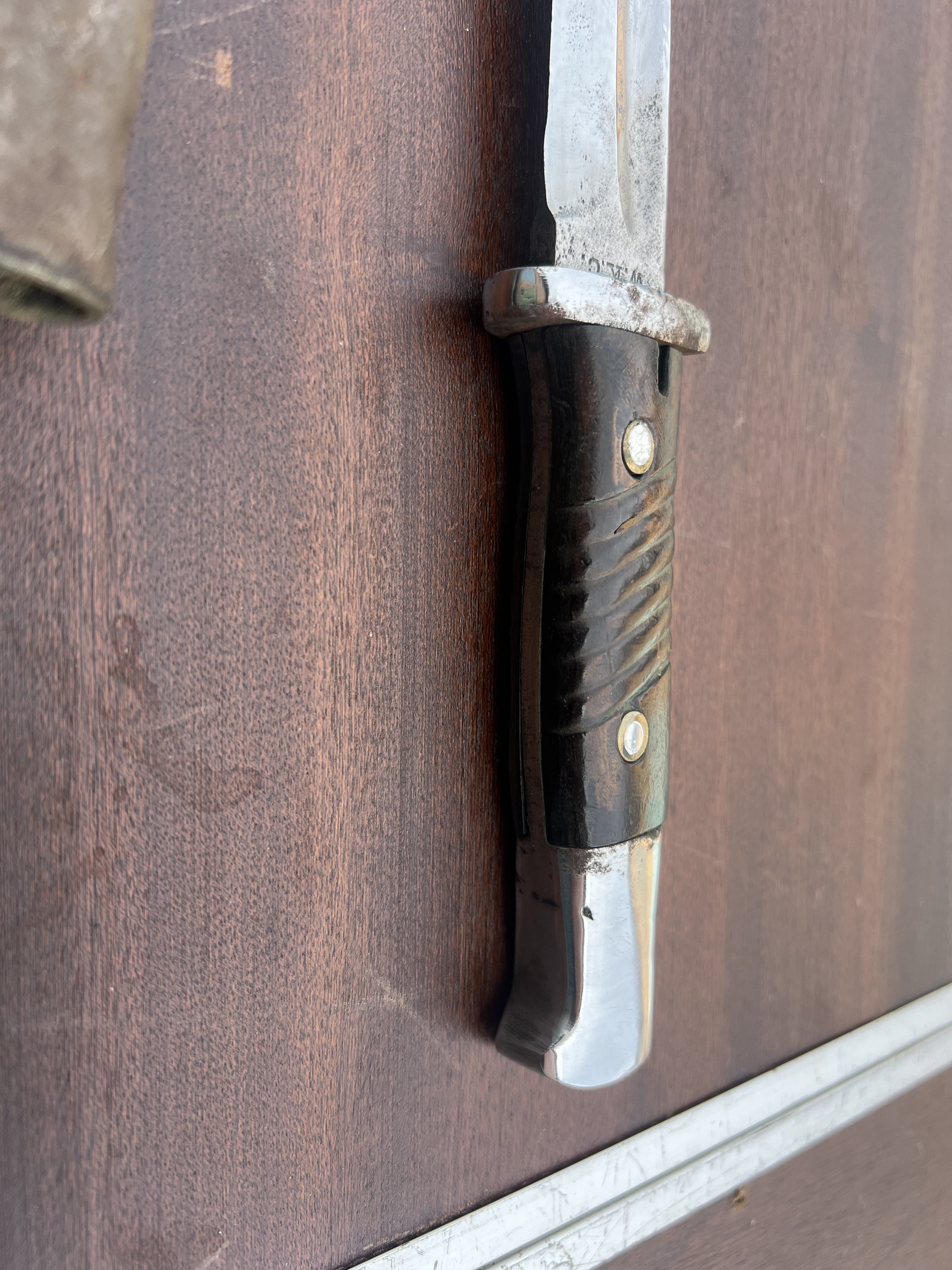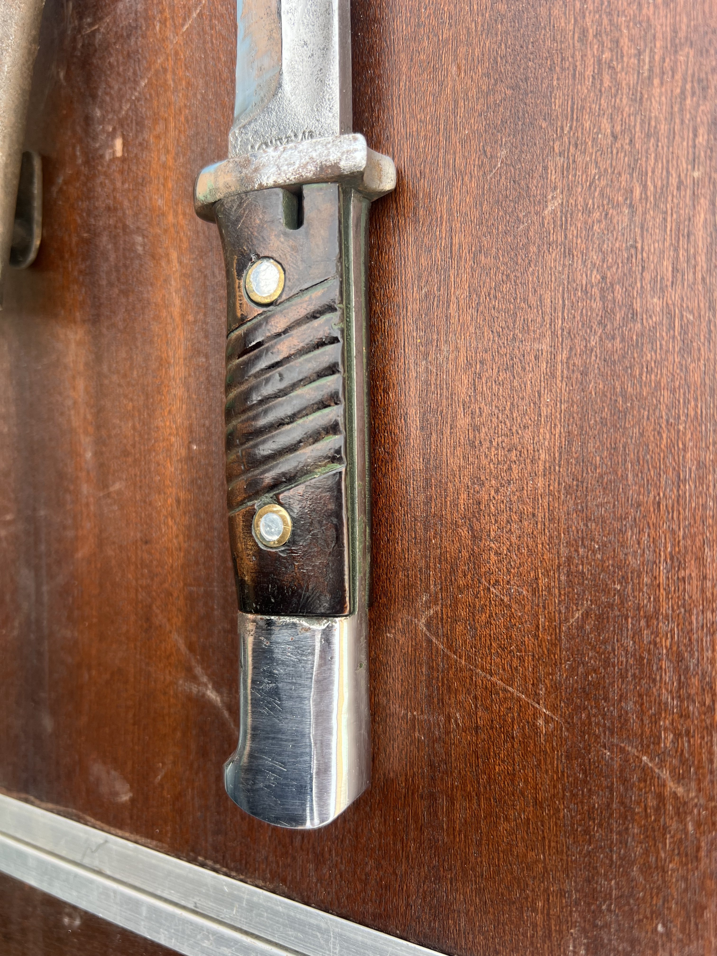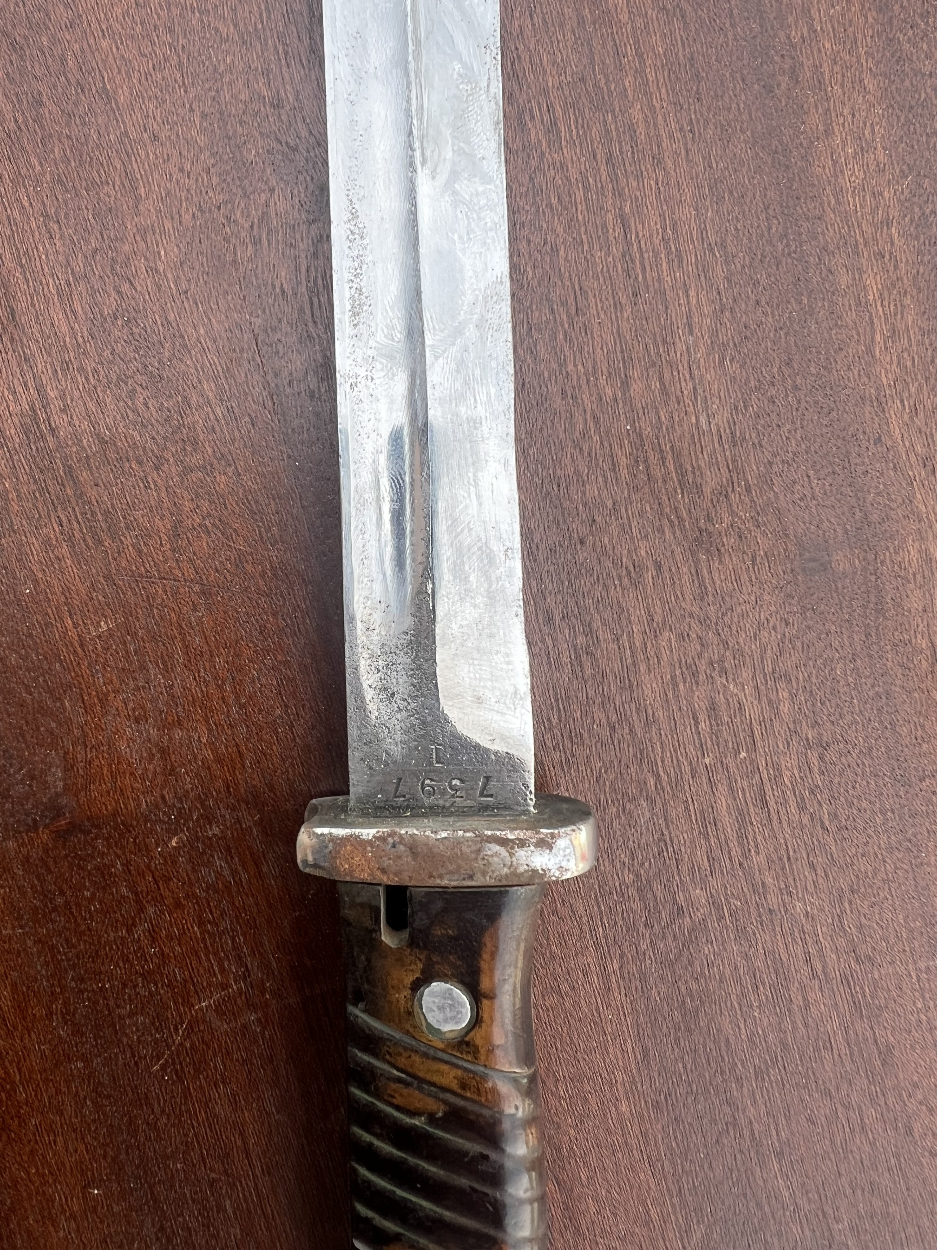 За цену сейчас не скажу но штык интересный . В заклепки на 45й год а клейма на 40вой . Думаю найдется ценитель .