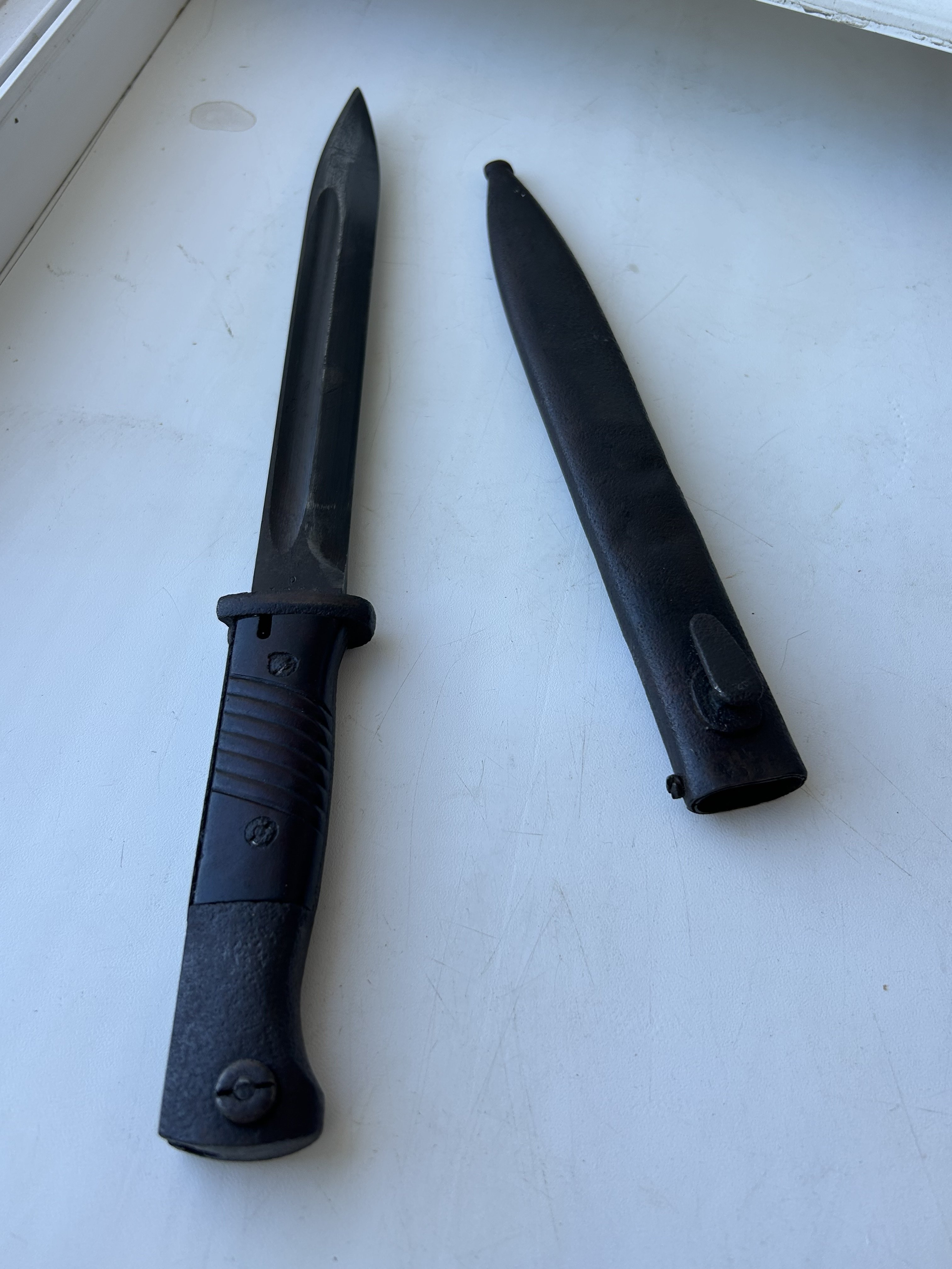Вітаю! Зорієнтуйте будь ласка по ціні цих предметів на сьогоднішній день для продажі. Наперед вдячний Парний штик к98, червоний бакеліт.