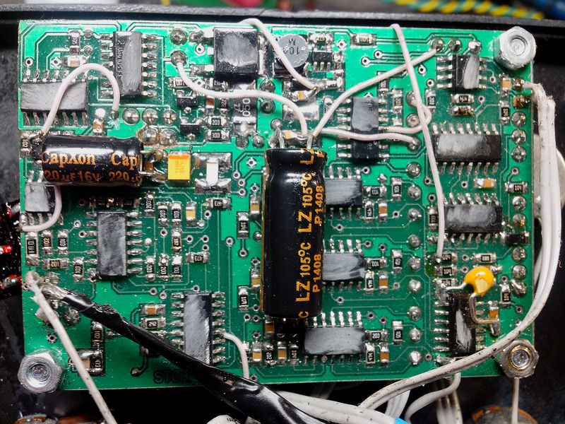 Ну вот и меня наконец-то судьба свела с этим чудом отечественной инженерно-конструкторской мысли. Попал мне в ремонт "Шторм-Турбо". Я не знаю, кто его собирал. Но с уверенностью могу сказать, что это не автор прибора. Печатная плата изначально сделана на достаточно высоком уровне. Но на этом все положительные впечатления и закончились. Глядя на ужасающее рукоблудство, находящееся внутри корпуса, могу предположить, что производитель этого "чуда" где-то закупает электронные платы, а потом уродует их наружными перемычками, криворукой пайкой и жлобскими проводами, смотанными изолентой, после чего продаёт. К слову - это прибор - вообще апофеоз жлобства. Сначала нас "встречает" залитый клеем шуруп. Ну, типа, "подлые конкуренты" задолбуться откручивать. "Аффтар" не угадал - всё откручивается, если знать, как. Далее - все корпуса микросхем, уже после запайки на плату (а значит - не сборщиком платы, а барыгой-рукоблудом) изуродованы шлифмашинкой, чтобы нельзя было прочитать маркировку. Послушайте, "недомастер", для специалиста опознать установленный компонент не проблема, даже если маркировка нечитаема. Просто нужно мал-мал разбираться в электронике, чтобы это понять. Пэтому все старания оказались напрасными. Пайка периферии - это просто абзац. Школьный кружок "умелые руки" на второй год существования сделает качественнее. Одним словом - это же на сколько нужно неуважать покупателя, чтобы впаривать ТАКОЕ за деньги?! Конечно, мне могут возразить, что, мол, покупателю главное, чтобы прибор работал, а что там внутри - не его дело. Но, как инженер-электронщик, могу утверждать - приёмы и качество монтажа - это показатель профессионализма. Профессионал никогда не позволит себе выпустить подобное уродство, даже если будет полностью уверен в том , что он первый и последний, кто его увидит.