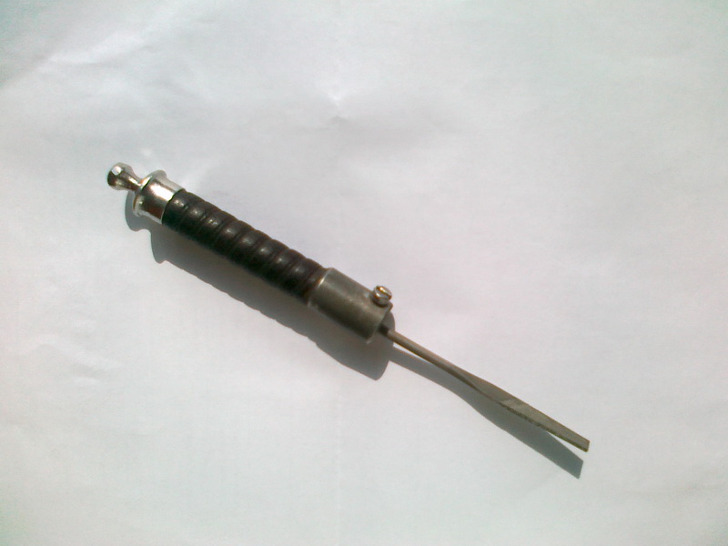 И ещё. После окончания боя, шастая по полю, мое дитё выменяло на гильзы у такого же ребенка вот такую штуку. Эдакая антуражная ручка под надфиль. Понимаю, что потерял кто-то из реконструкторов. Ребенок готов вернуть свой "трофей" владельцу!