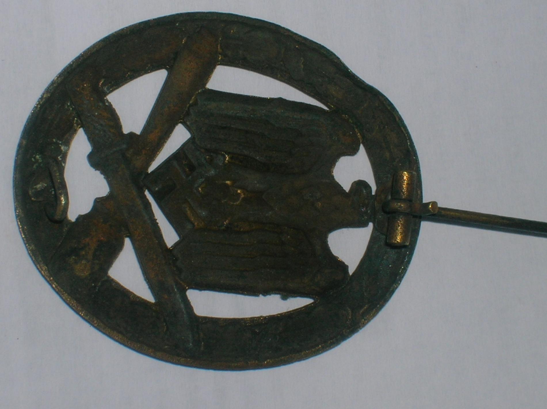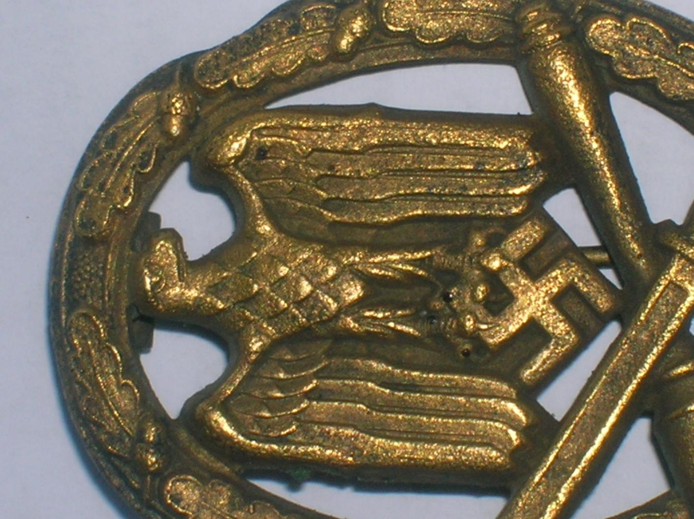 Судить о подлинности не возьмусь - неблагодарное это занятие по таким картинкам. Но и "фуфлить" данный девайс сразу не стоит. Данные значки, с контррельефом В БУНТЕ - штамповала контора Маера.