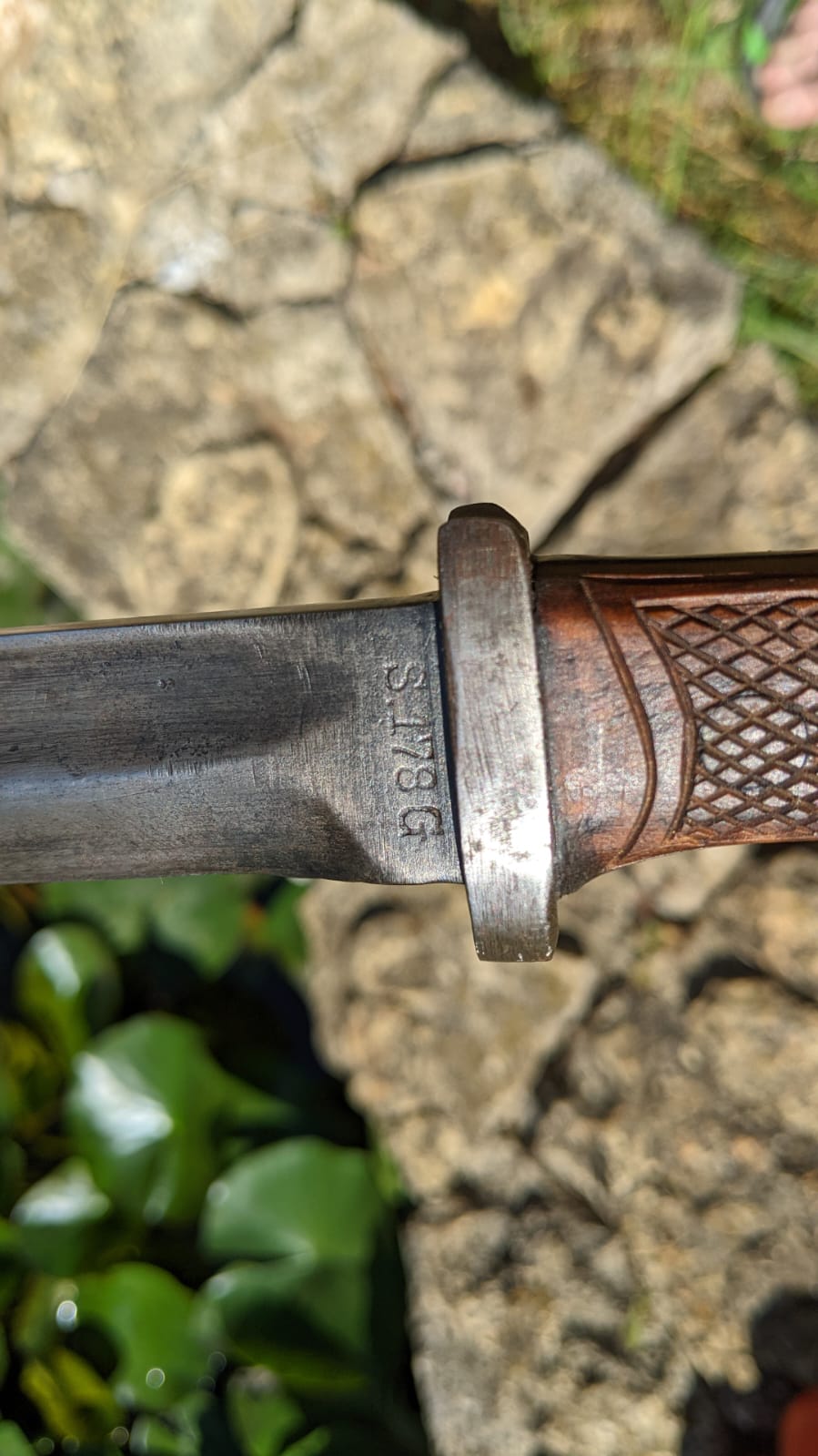 це клеймо - S-178G відповідає фірмі "Gebr.Heller, Marienthal" (WaA 77) ТОБТО - багнет до Маузера 98К 1935 року СПОТВОРИЛИ ДО НЕВПІЗНАВАНОСТІ чиїсь оч.умєлі ручки... там навіть на зап.часті нема чого полишити... ИМХО