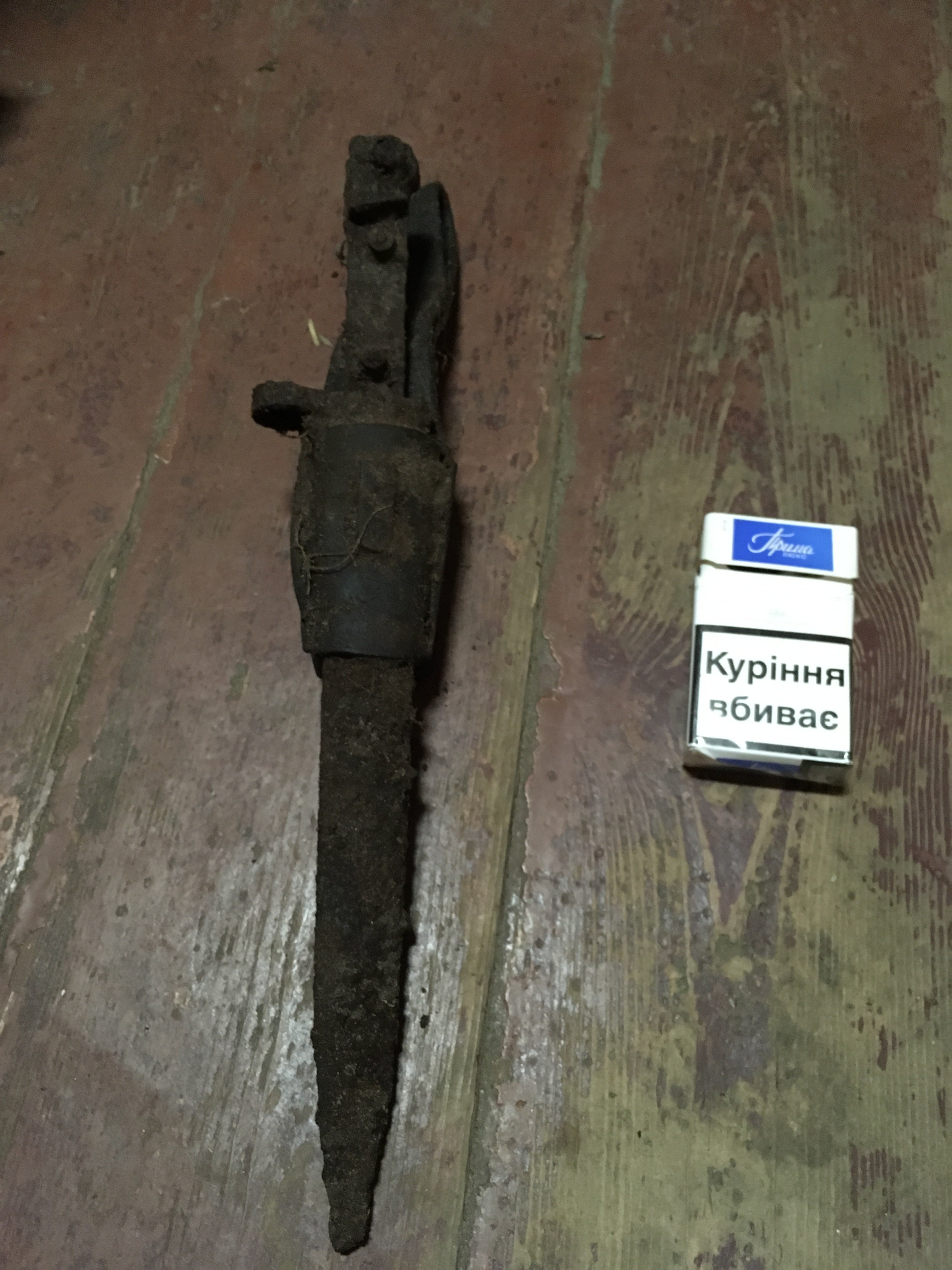 Наконец то попался Померял- 36см ( СВТ-40) Ножны жаль, струхли. Но в полне ещё жив за 80 лет. Коллекция пополняется вынуть по человечески не получилось, снимал, как шкуру ножны