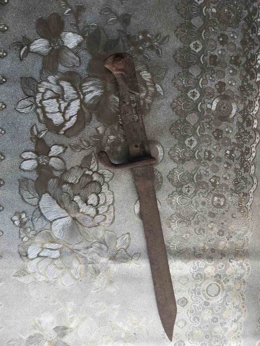 Seitegewehr 98/05 со сточенной пилой . Выпускался с 1905 по 1918 год , служил в полиции и вспомогательных частях до 1945го года , пилу с саперного образца стачивали с 16 по 18 год после поставки на фронт по желанию командования части . Некоторые считали не корректным пользоваться штыком для другого рода войск некоторые стремились оградить своих солдат от излишней жестокости при попадании в плен . Пропаганда союзников использовала наличие пилы как символ особой жестокости немцев . Укороченный не немцами , турками или югославами . Скорее всего русскими или болгарами как трофей после войны . Судя по отсутствию "рогов" поздний вариант ( после 1914 года ) и огнезащитная пластина утрачена . На обухе возле гарды может сохраниться год выпуска . Коллекционной ценности не представляет , как антуражный предмет может пользоваться спросом . Выдавать за "окопник" не стоит а после чистки и установки деревянных или роговых щечек можно продать как внестроевой .