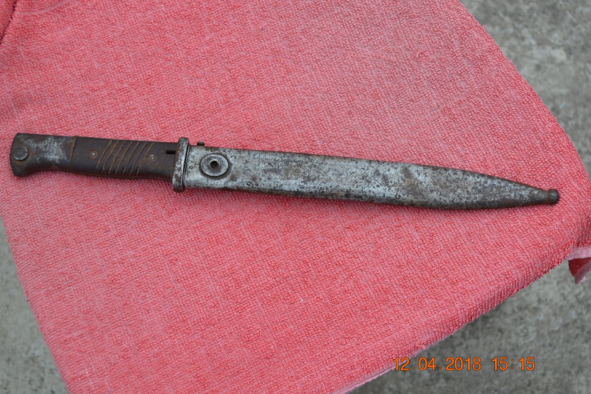 Штык-нож к винтовке Маузер. Выпущен в 43 году. Хороший, только клык приварить нужно на ножнах - этим займется потенциальный покупатель, если будете продавать.
