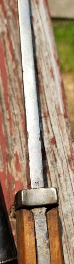 Обсуждался с похожим клеймом на другом форуме, там AndyB тоже участвовал. Цитата его сообщения: When is a one piece handle with blade so its a german export to Spain some call it M1936, some are wout barell ring and flashguard, when 2 pieces so its Spanish M1943 bayonet.