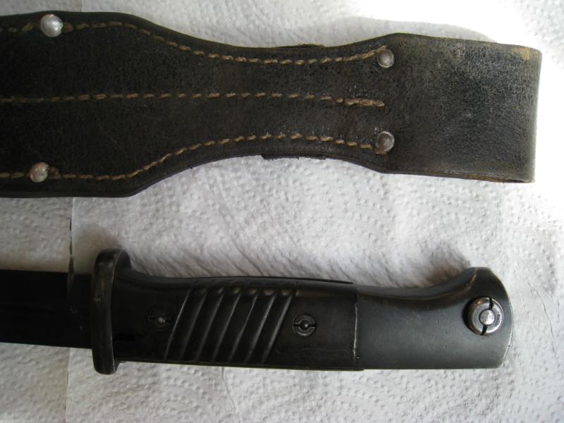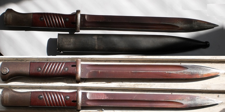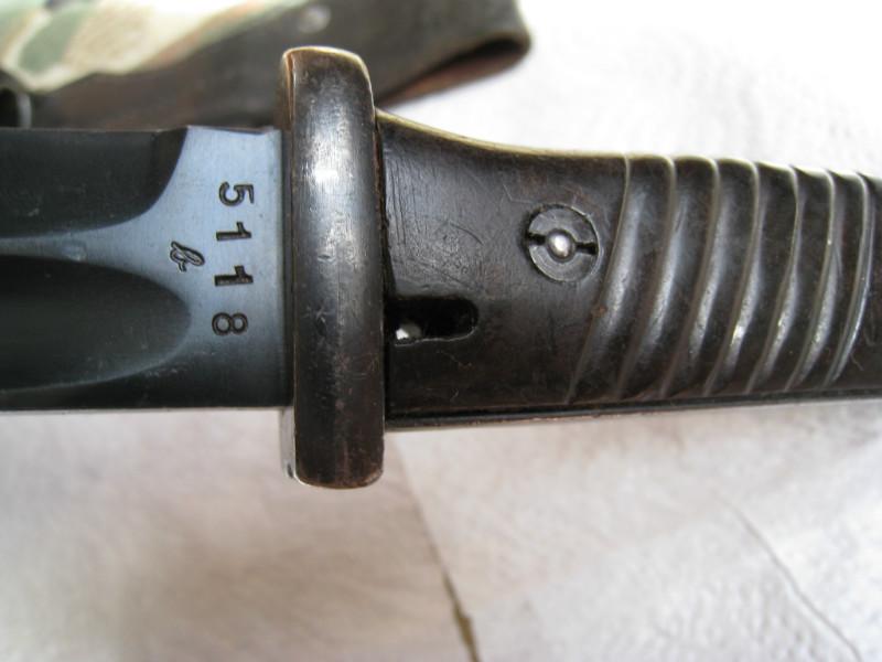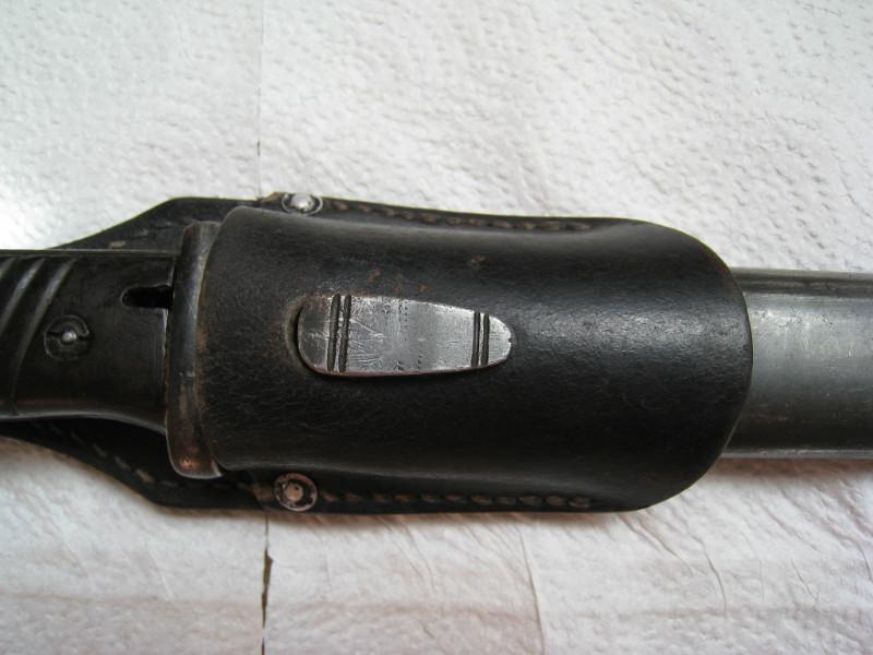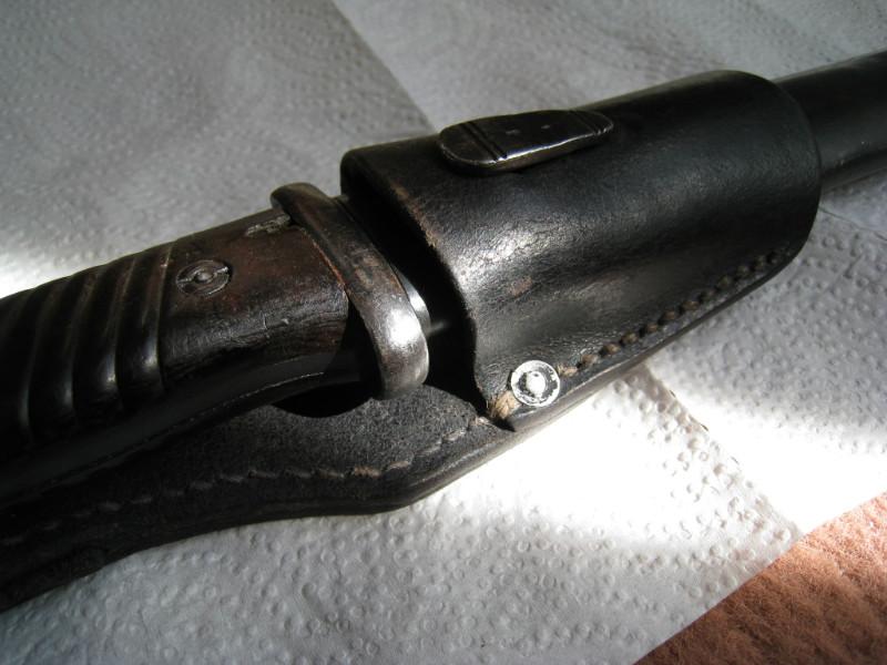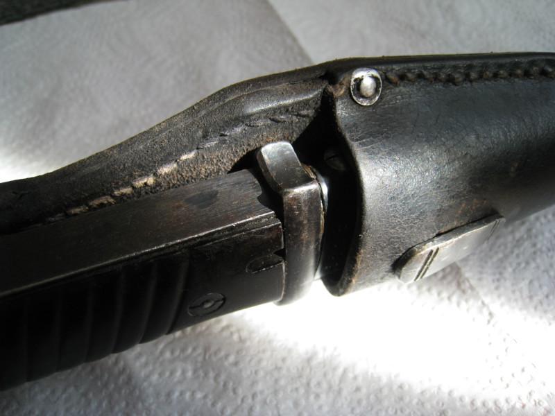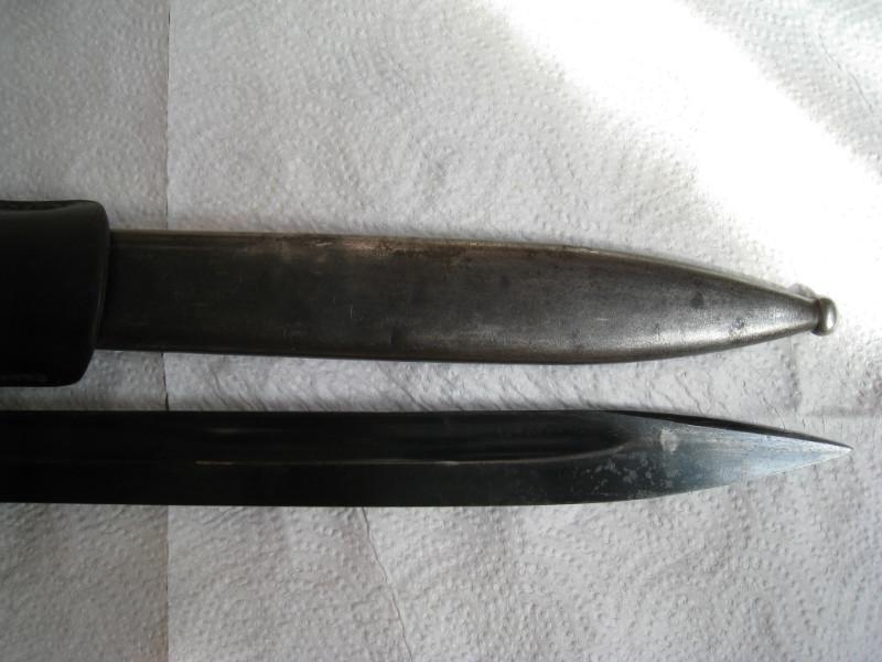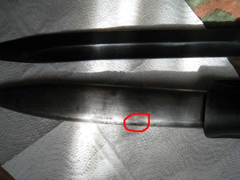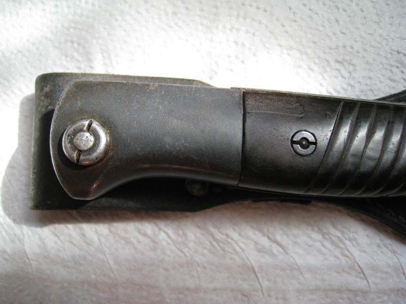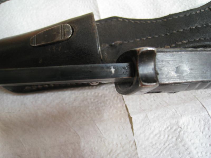 Обратил внимание,что защелки штыков 98-х с обычным черным воронением внутри часто бывают с таким красным оттенком,я думал что сталь на защелки часто шла легированная и хорошо закаленная,и эти легирующие добавки могли давать бордовый цвет.Тут может быть весь штык сделали из легированной стали??? В общем вопрос интересный.