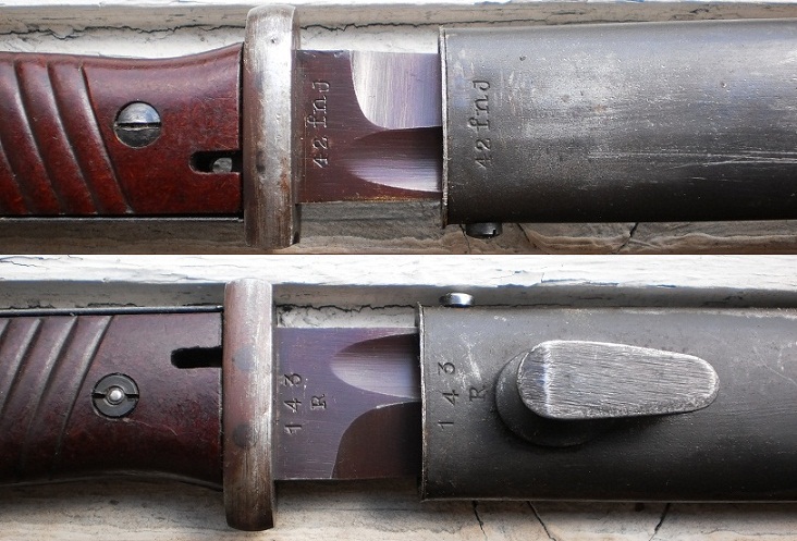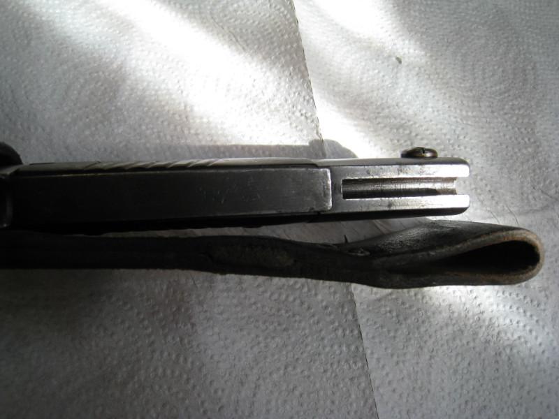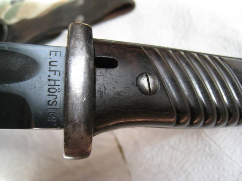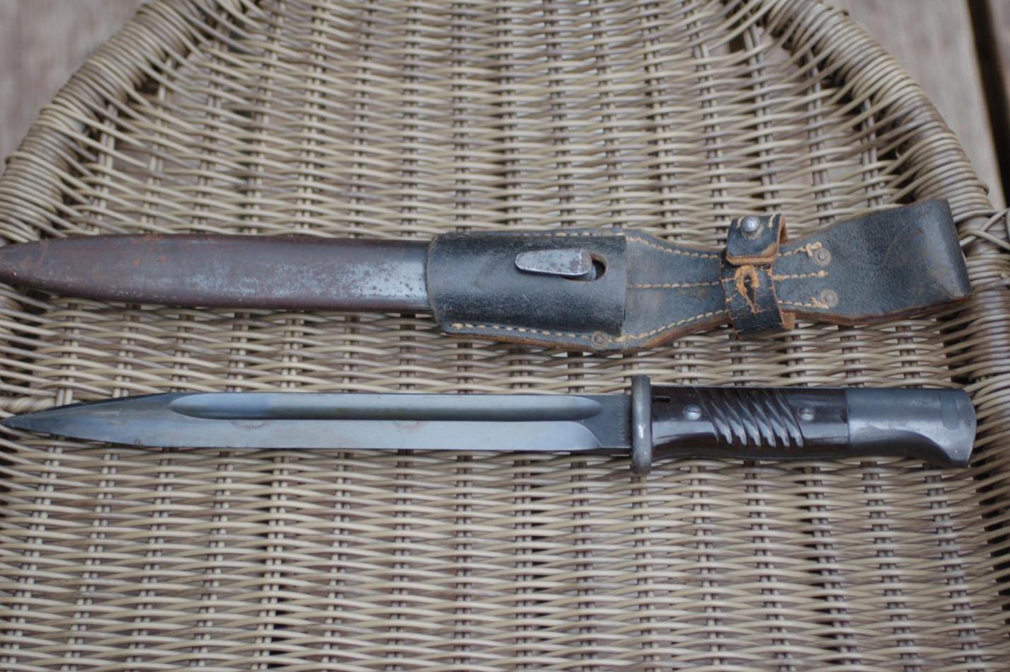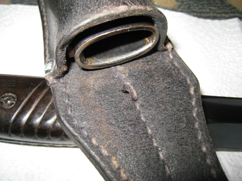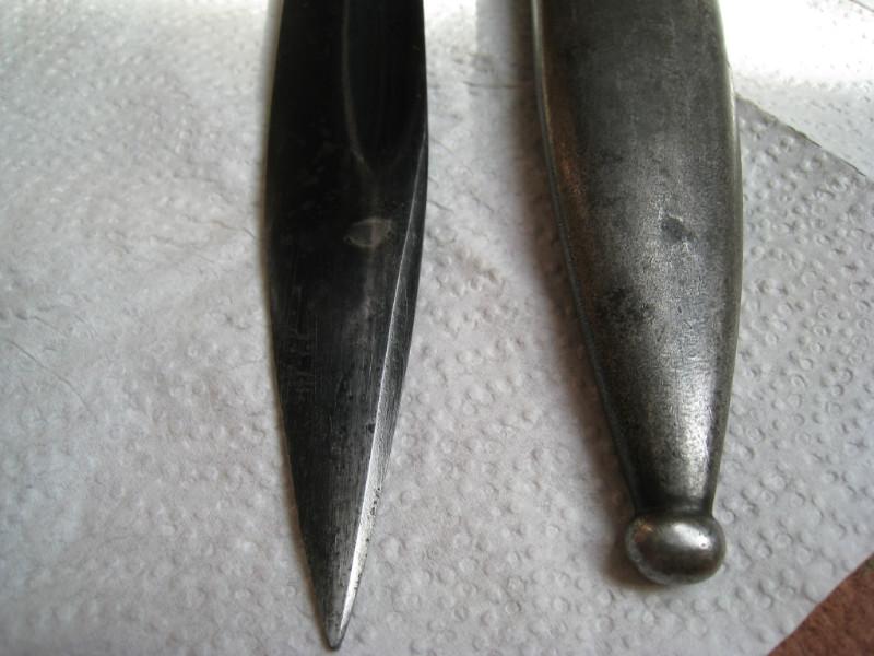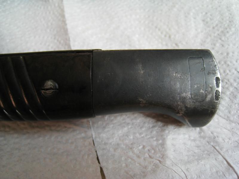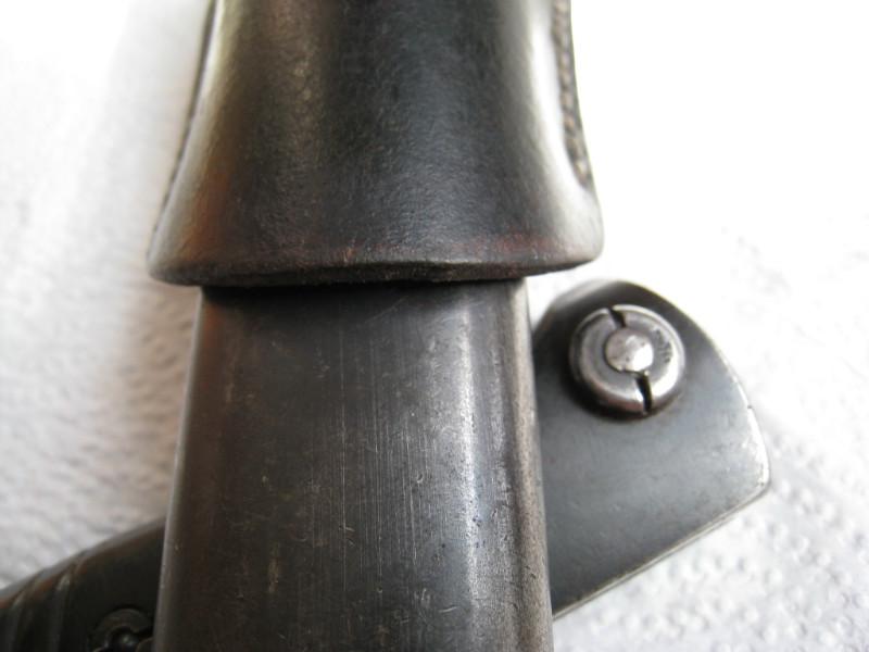 Обратил внимание,что защелки штыков 98-х с обычным черным воронением внутри часто бывают с таким красным оттенком,я думал что сталь на защелки часто шла легированная и хорошо закаленная,и эти легирующие добавки могли давать бордовый цвет.Тут может быть весь штык сделали из легированной стали??? В общем вопрос интересный.