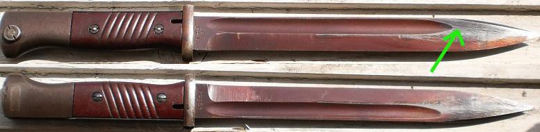 Поддержу Виктора(zascok), я также считаю, что штык воронили поверху оригинального воронения. Поверхность пятнистая.