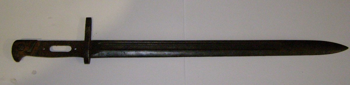 Длинная модель штык-ножа к винтовке системы Винчестера образца 1895 года, т.н. "русского заказа". На гарде найдете клейма производителя. Будет интересен на аукционе, хотя конечно отсутствие ножен - это минус - их проще заказать новые чем искать оригинальные на нашем рынке.