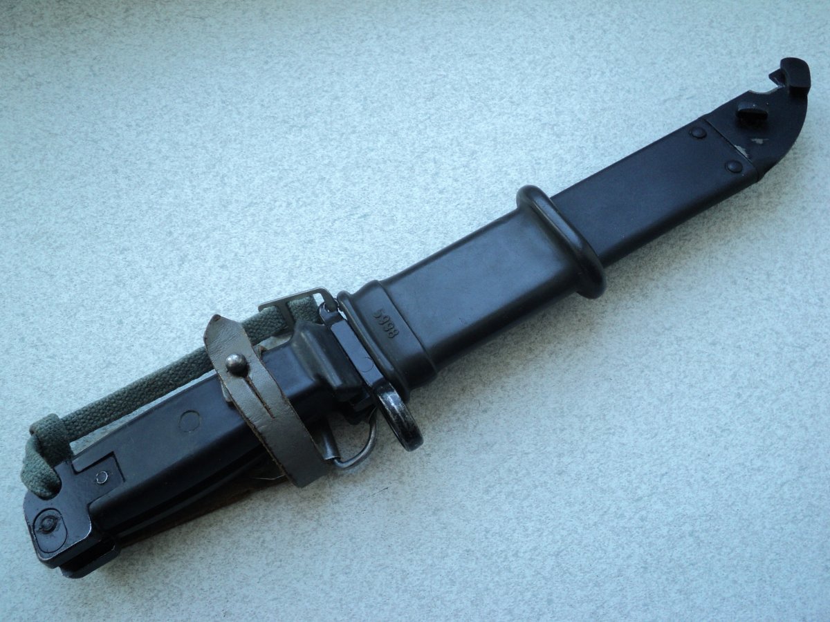 Сам тык-нож к автомату MPi KM и MPi AK 74N , в Европе называется штык к АКМ второй модели , а ножны к автомату MPi KM образца 1959 года , разнобой , но всё ГДР .