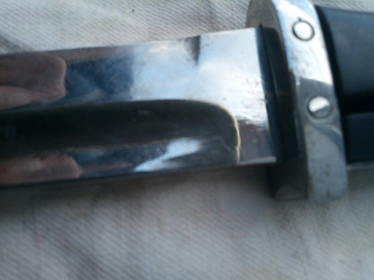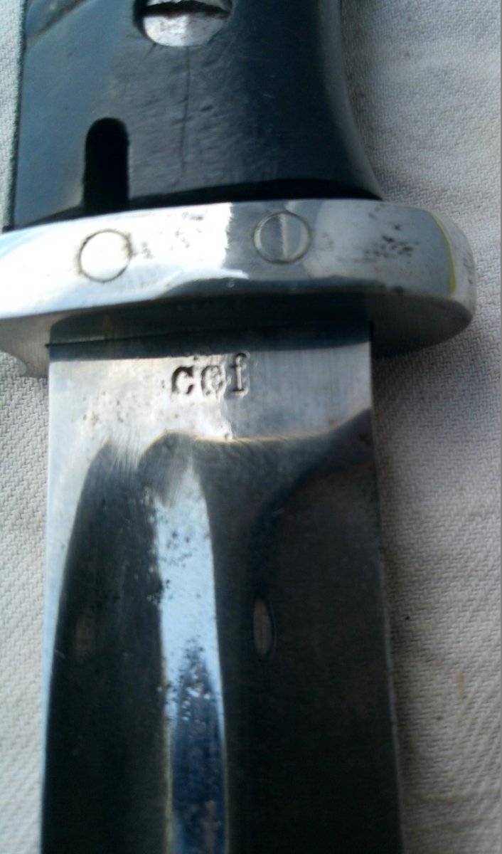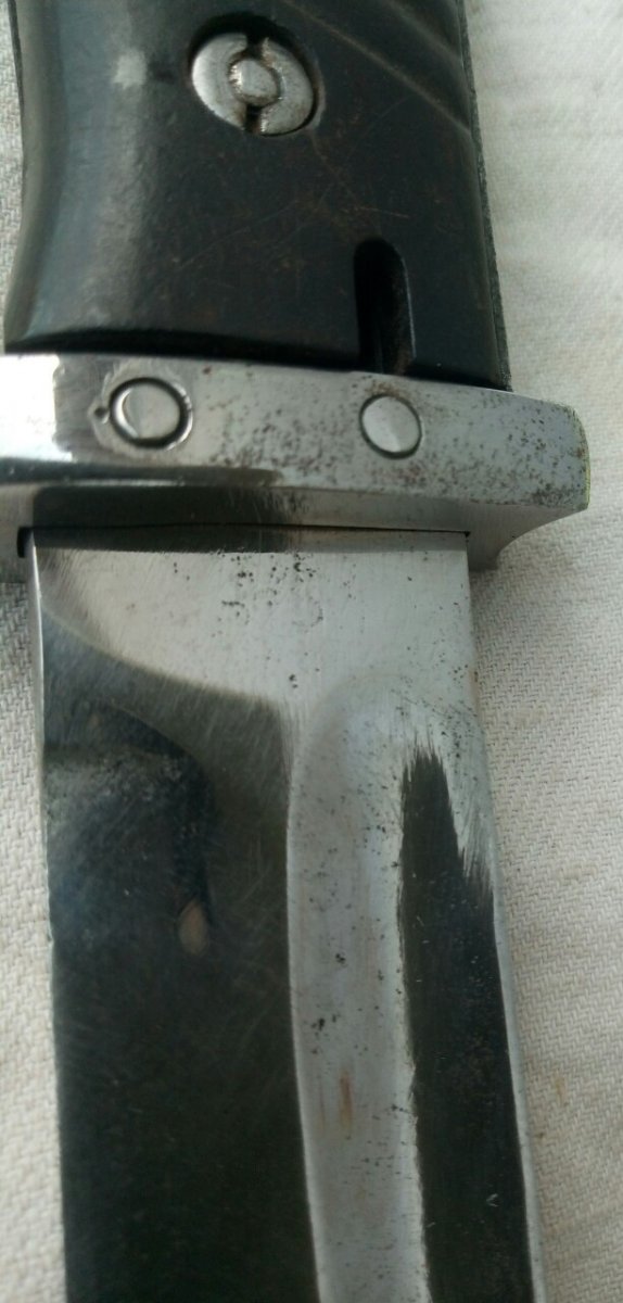 Похоже кто то ремонтировал даный штык,гарда снималась,так что в полне реально что рукоять и клинок с двух разных предметов.