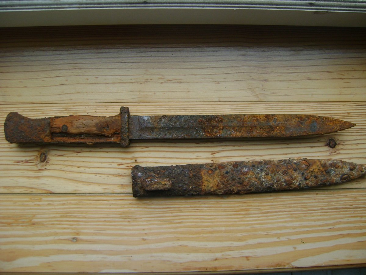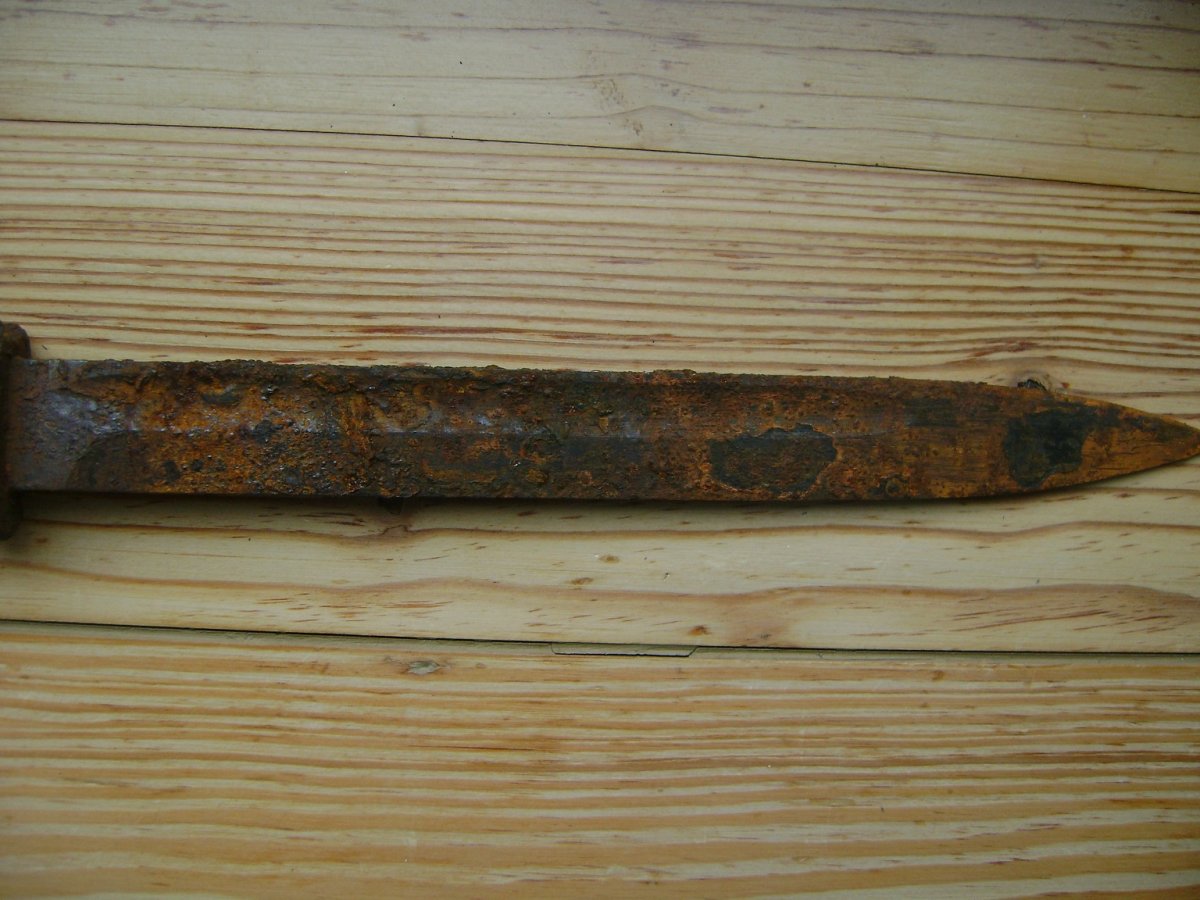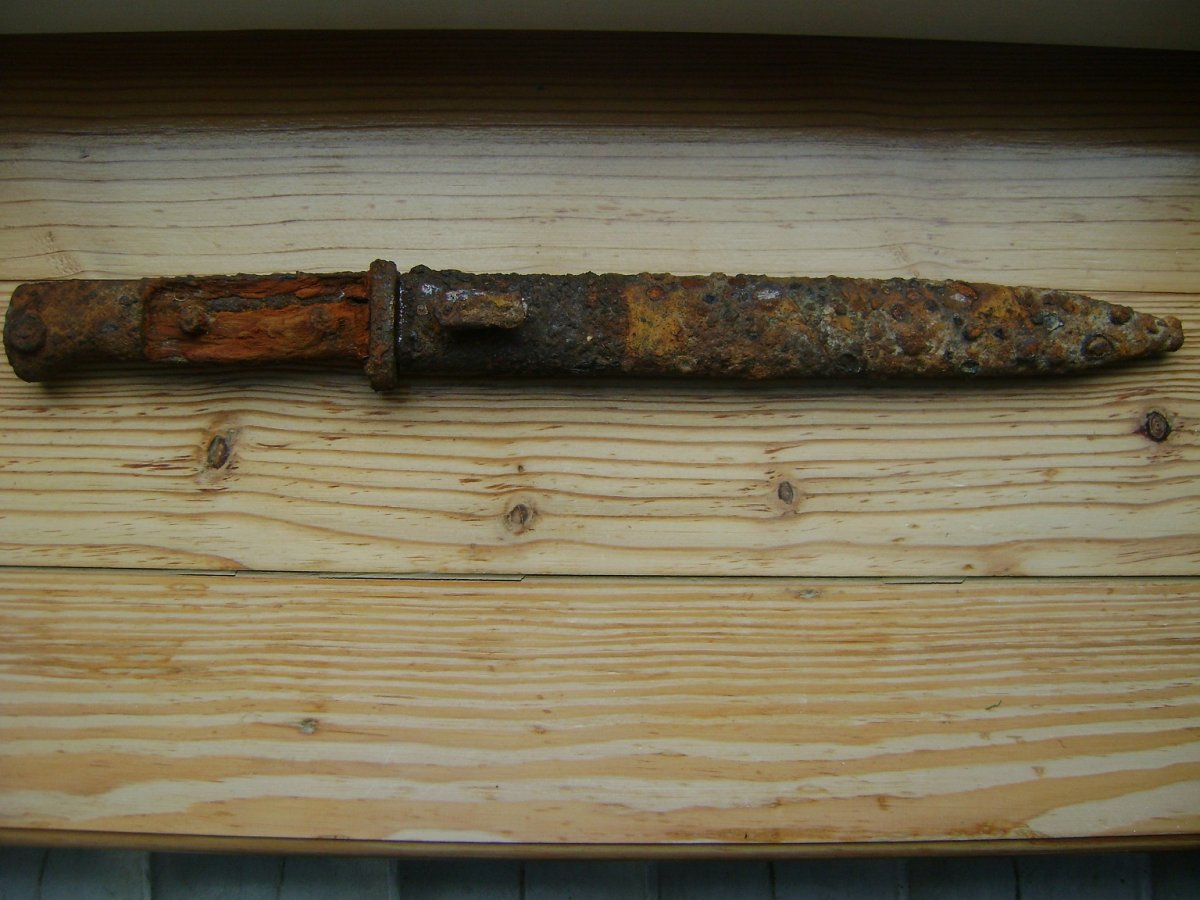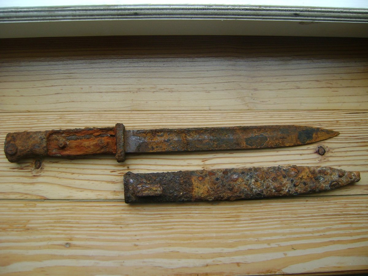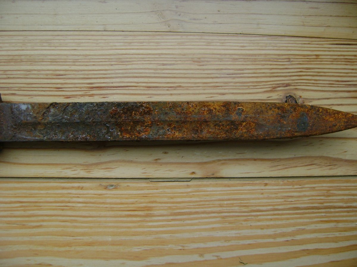Не сваріться, кожен висловлює свою думку і інколи помиляється. Штик в такому стані дороще 500-600грн ( ринок ними завалений) не продати, кіт в мішку. Після чистки ножни можуть бути решетом, на клині пили вроді немає, але появляться каверни, глубину яких важко вгадати, рукоятка серйозно посипеться.