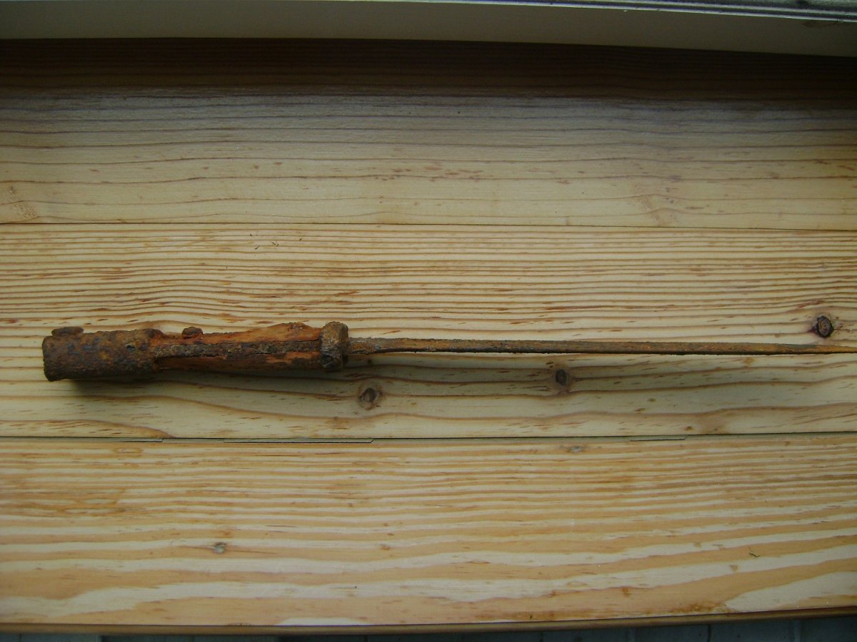 Немного изогнутый потому и сделал фото ребром клеймо не вижу чистить не хочу. Вчера его поднял.