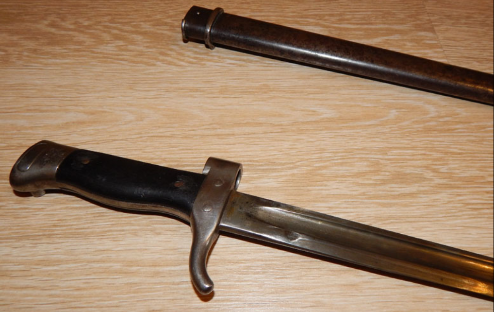 Da dumaju sto klinok originalen, vygljadit kak ot paradnovo Demaga, vozmozno byl nikelirovan, dumaju sto vozmozno kustarno kto to izmenil dlja vintovky karabina M92 Berthiera, nakladki i rybina po mojemu mneniu neimejut 100 let, nozny dumaju zdelany takze kustarno po germanskomu modelu, kolco gardo dolzno by imet u Berthiera tolko 13mm MRD. s uv.Andy