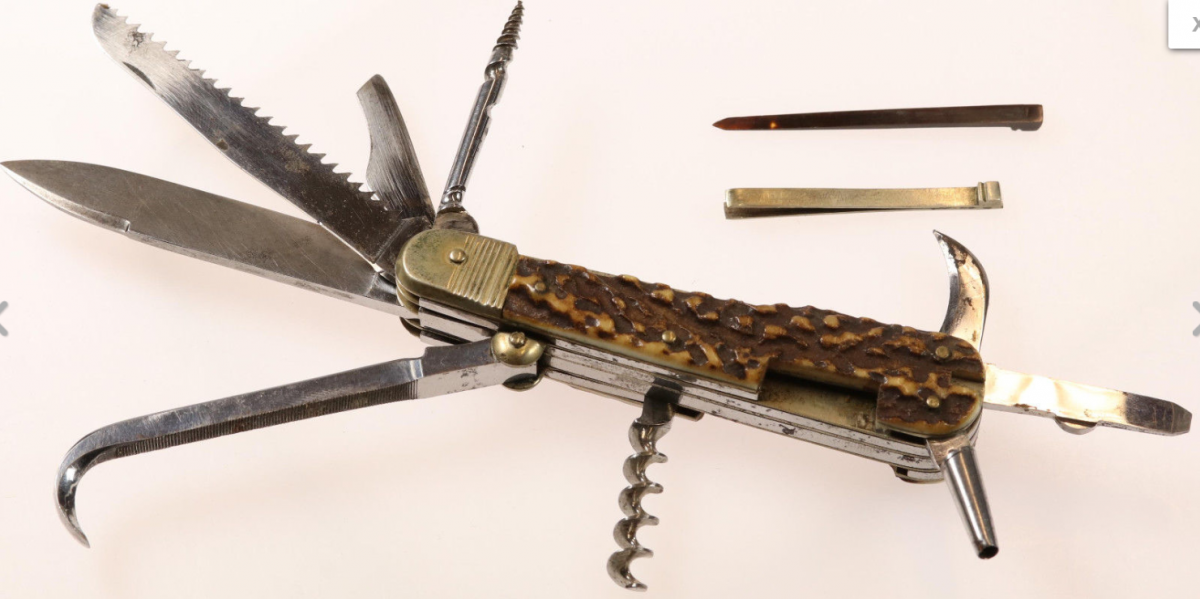 Вот: altes Deutsches Armeemesser WK1 Просто хороший нож в отличном сохране (с, двумя дополнительными элементами, которые вставляются сзади, с обоих сторон под роговые накладки, что-то типа пинцета и хз.) обычно эта модель идёт без них.